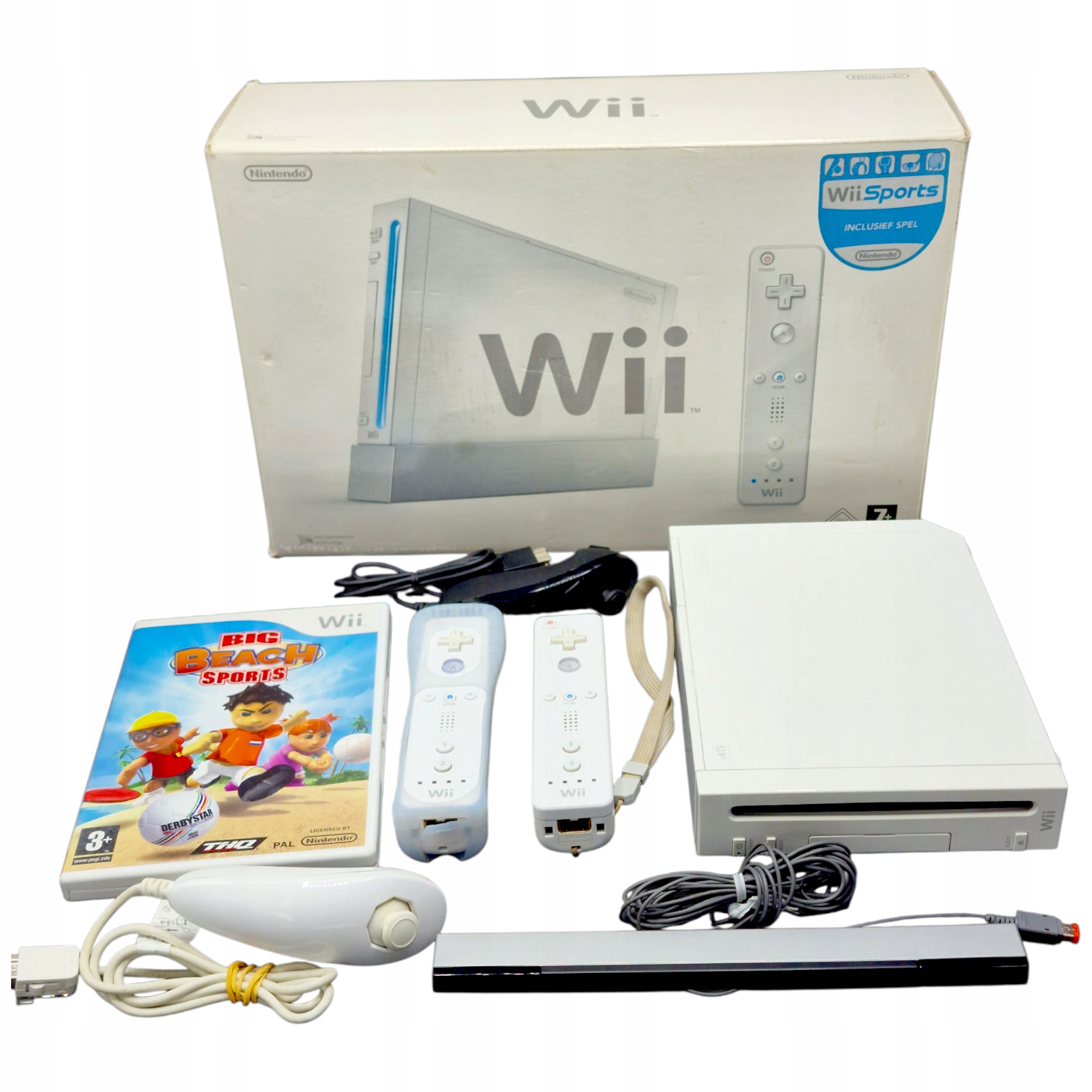 Оригінальна консоль Nintendo Wii з аксесуарами в заводській коробці.