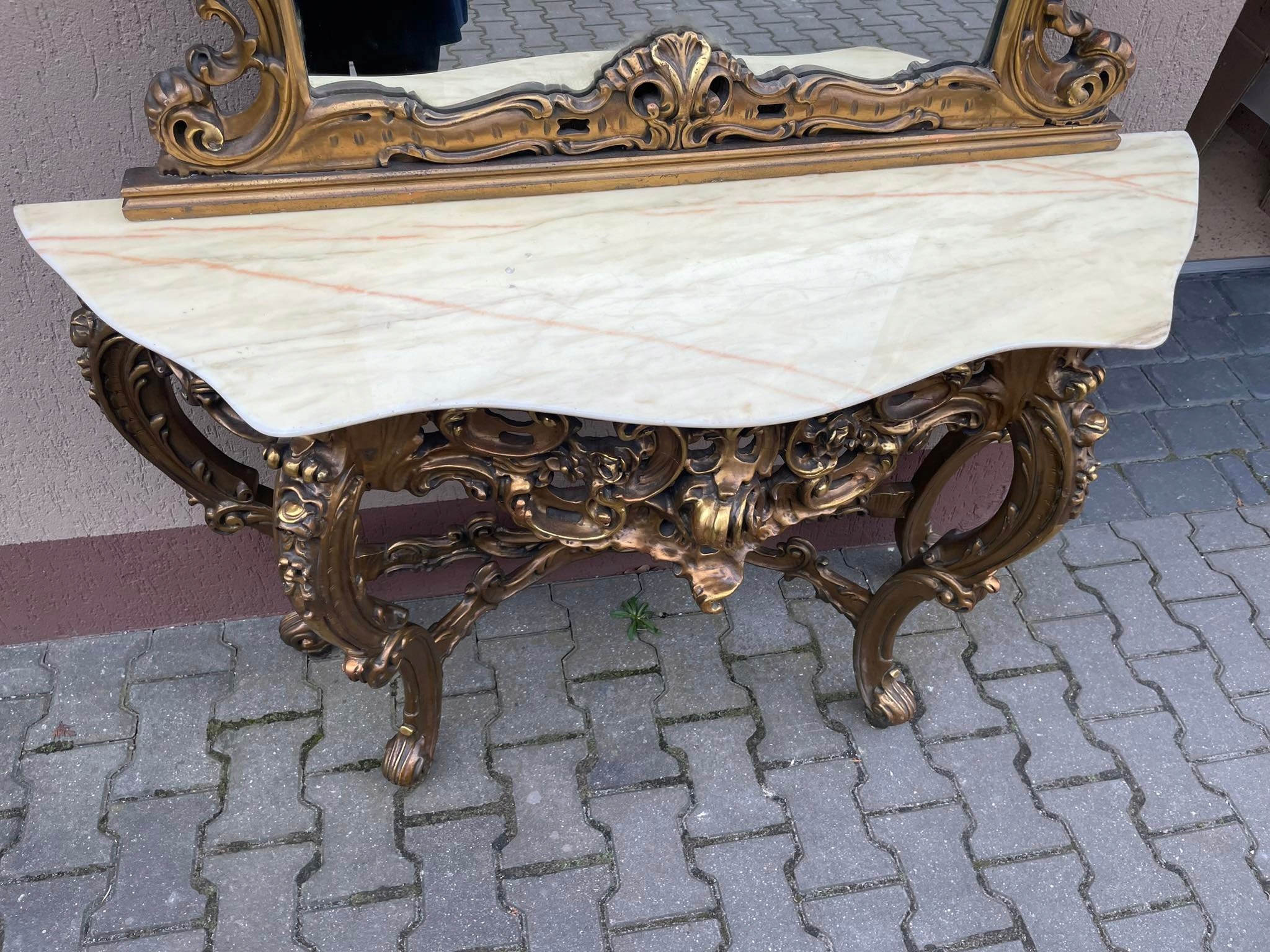 КОНСОЛЬ ТА ДЗЕРКАЛО МАЮТЬ ГАРНЕ РІЗЬБЛЕННЯ У ФОРМІ АЖУРНОГО ГНУТОГО УЗЕРУНКУ.