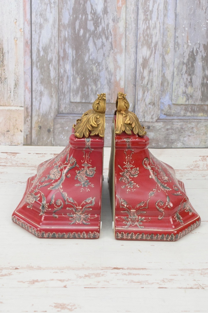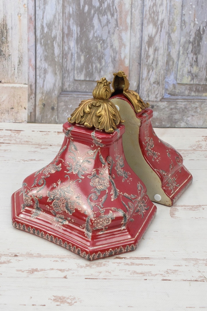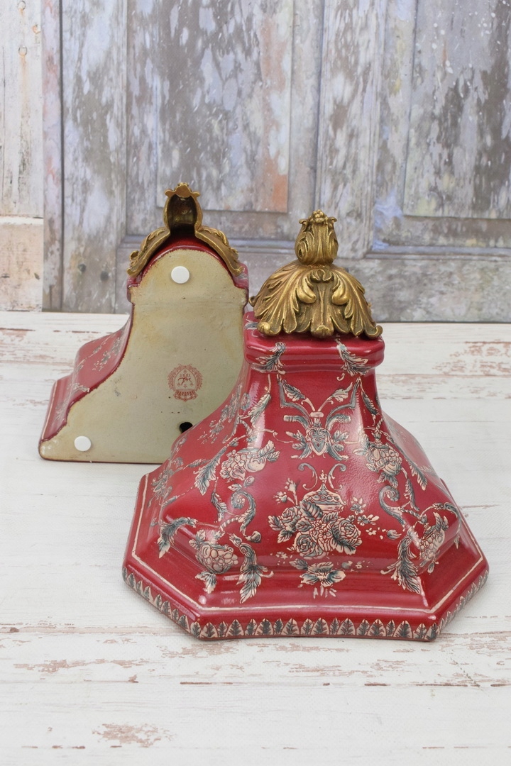 Консольні полиці з червоної порцеляни. Бронзові консольні столики з підписом
