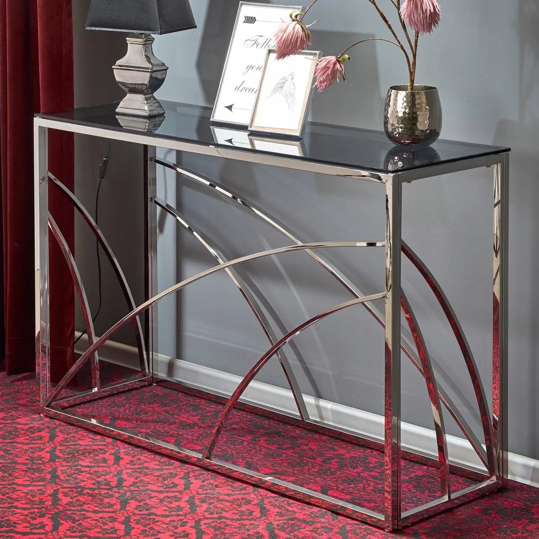 Елегантна скляна консоль для передпокою Glamour KN5 Silver Chrome Plated Halmar