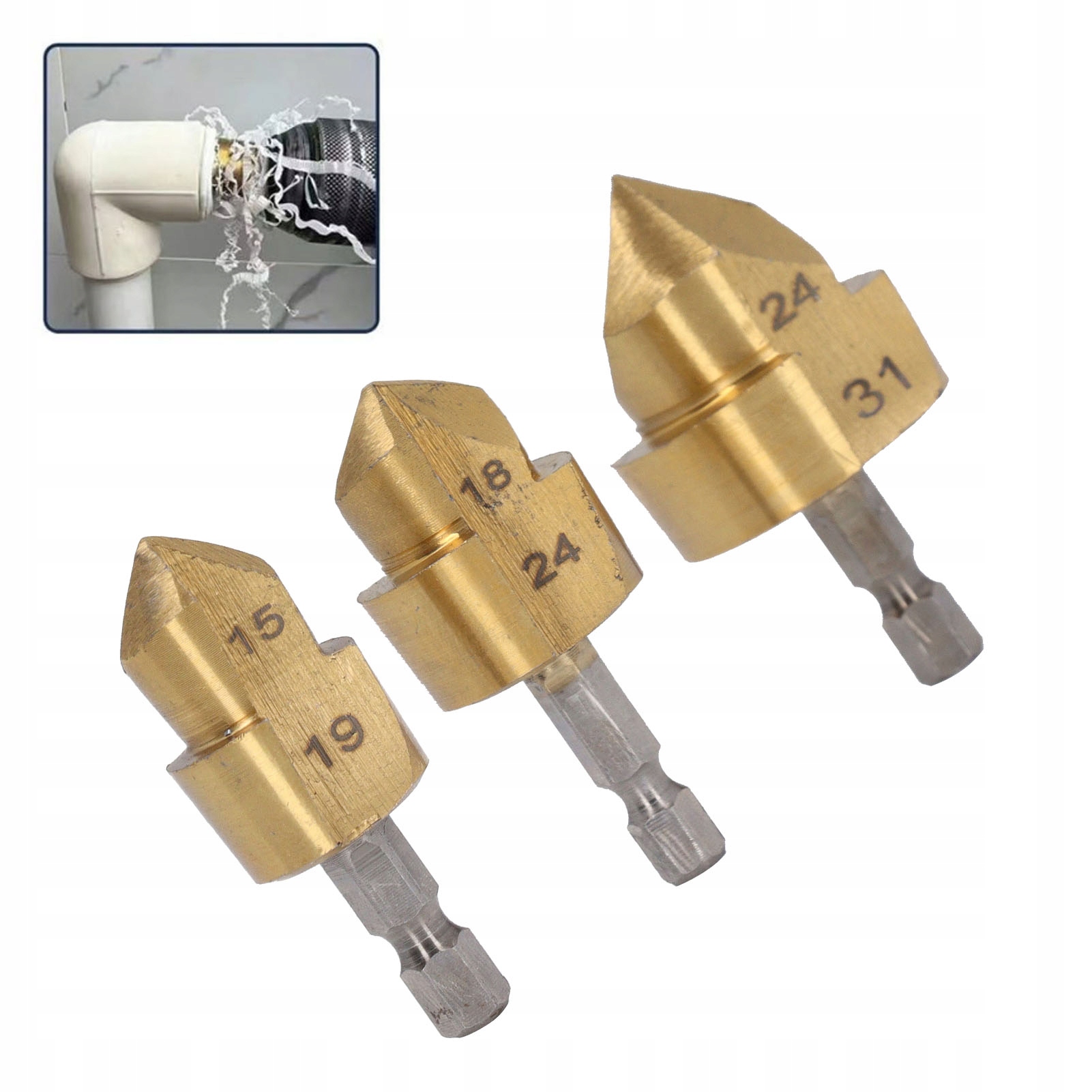 [Набір підйомних свердел PPR] У набір входять три підйомних свердла PPR з діаметром леза 15-19 мм, 18x24 мм і 24-31 мм. З шестигранним хвостовиком 1/4 дюйма, сумісним із більшістю електроінструментів.