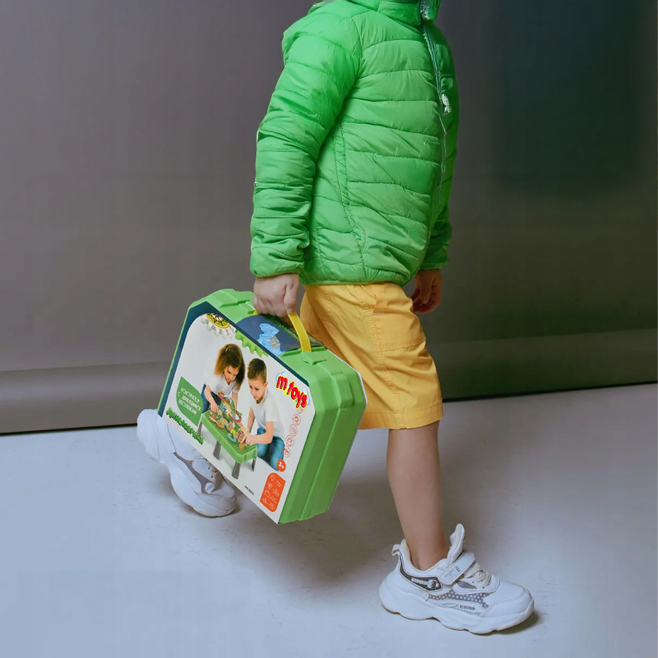 The Розвиваючий набір MTOYS - чудова іграшка, яка перенесе кожну дитину в захоплюючий світ динозаврів! Барвистий стіл із рухомими шестернями, доріжками та природними елементами розвиває уяву, логічне мислення та ручні навички.