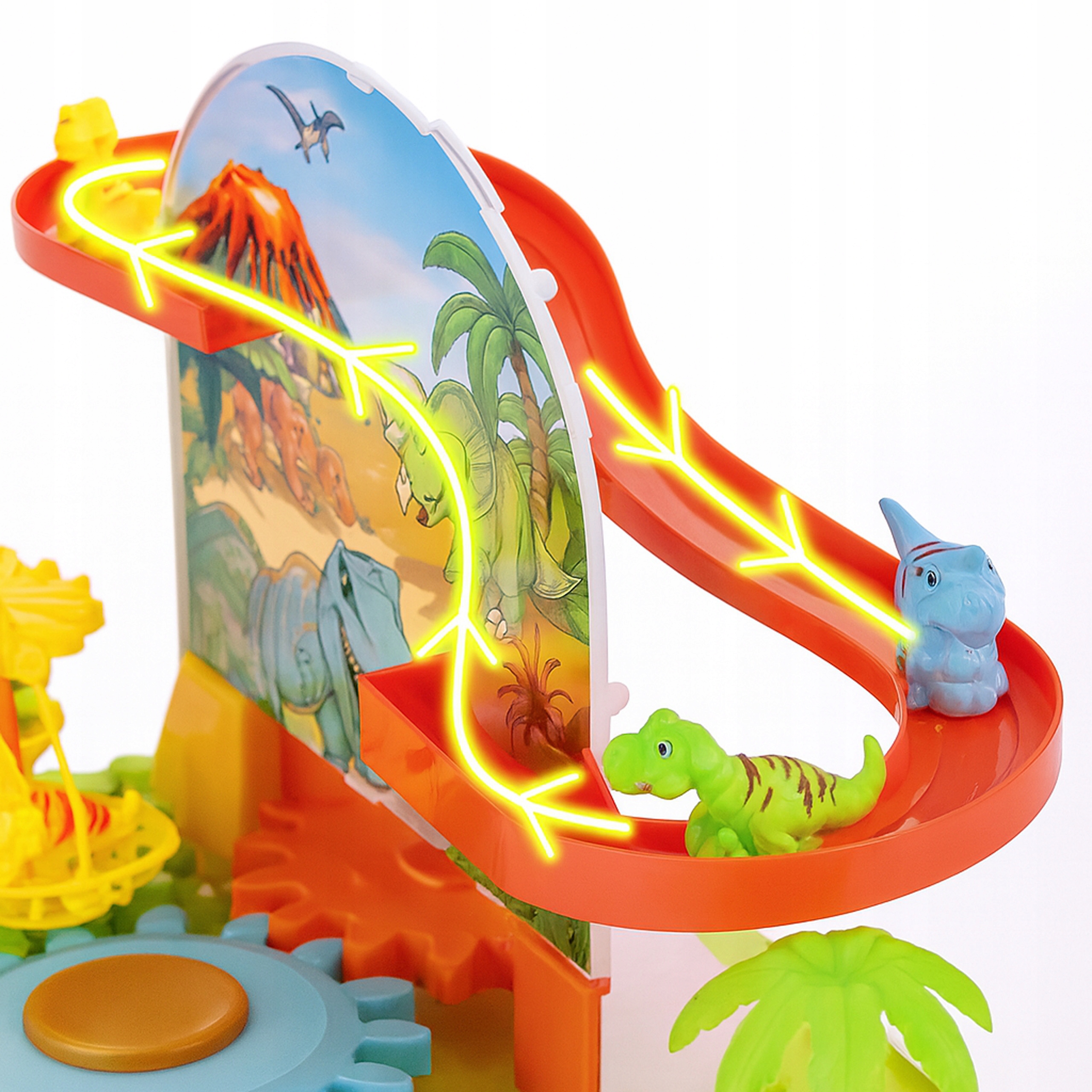 ✔️Нескінченне ковзання! - після гірки динозаври самі стрибають на нову доріжку, і веселощі починаються знову!