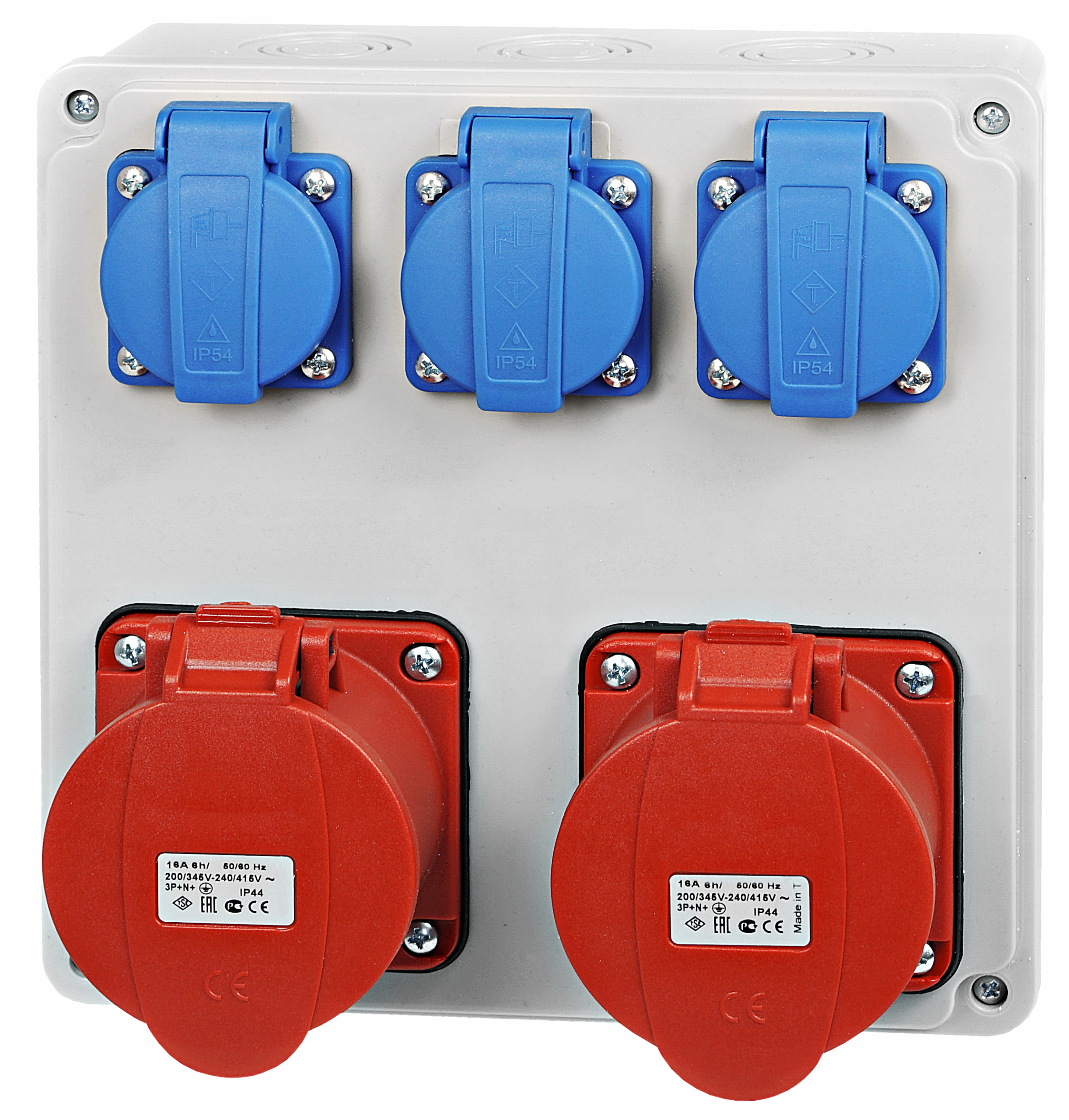 Оригінальний електричний, захищений, бренд Adelid. Мотин з 4-х полем 2x16A та трьома розетками 230 В.