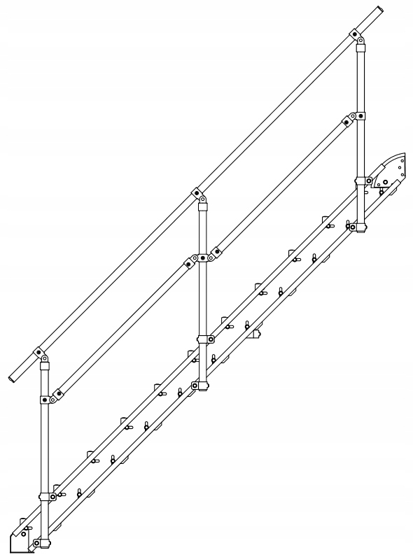 Ця версія сходів має одноразовий бар'єр, що складається з товстої оцинкованої труби з діаметром 42,4 мм та чавунними оцинкованими тримачами. Бар'єри: