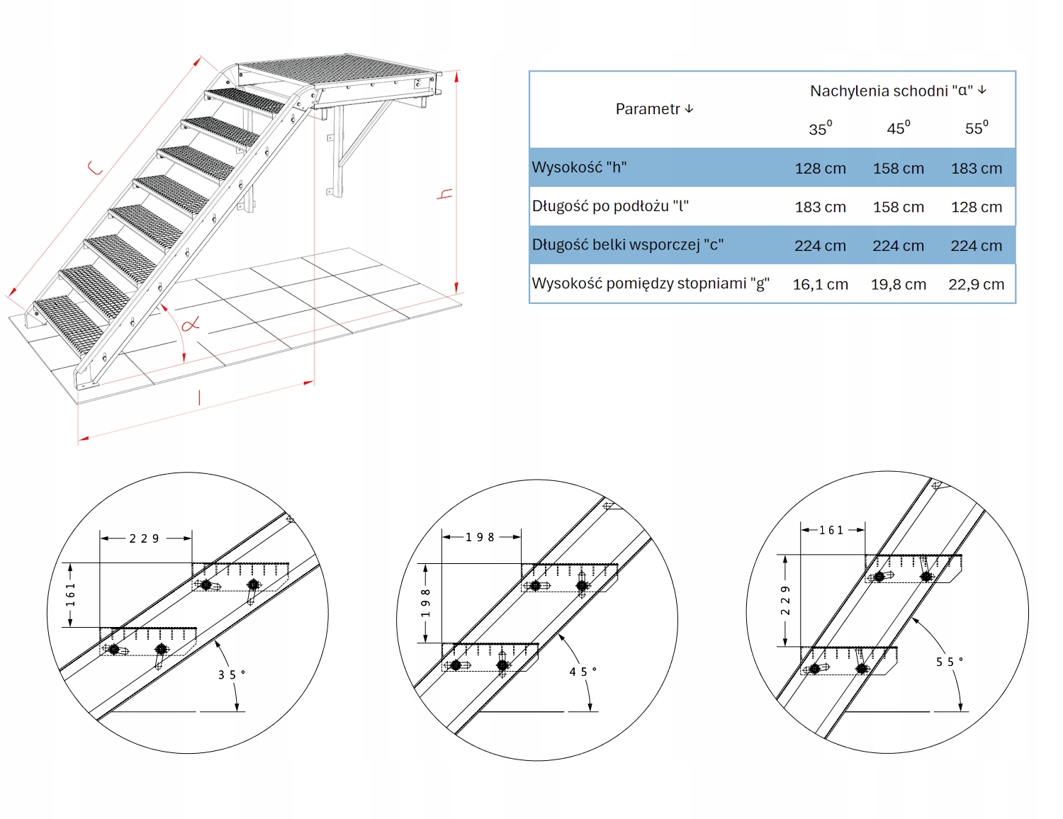 ✔ Набір структурних елементів для будівництва зовнішніх або внутрішніх сходів як у домогосподарствах, так і в промисловості. Для регулювання поглядів і підходять для висоти від 128 до 183 см .