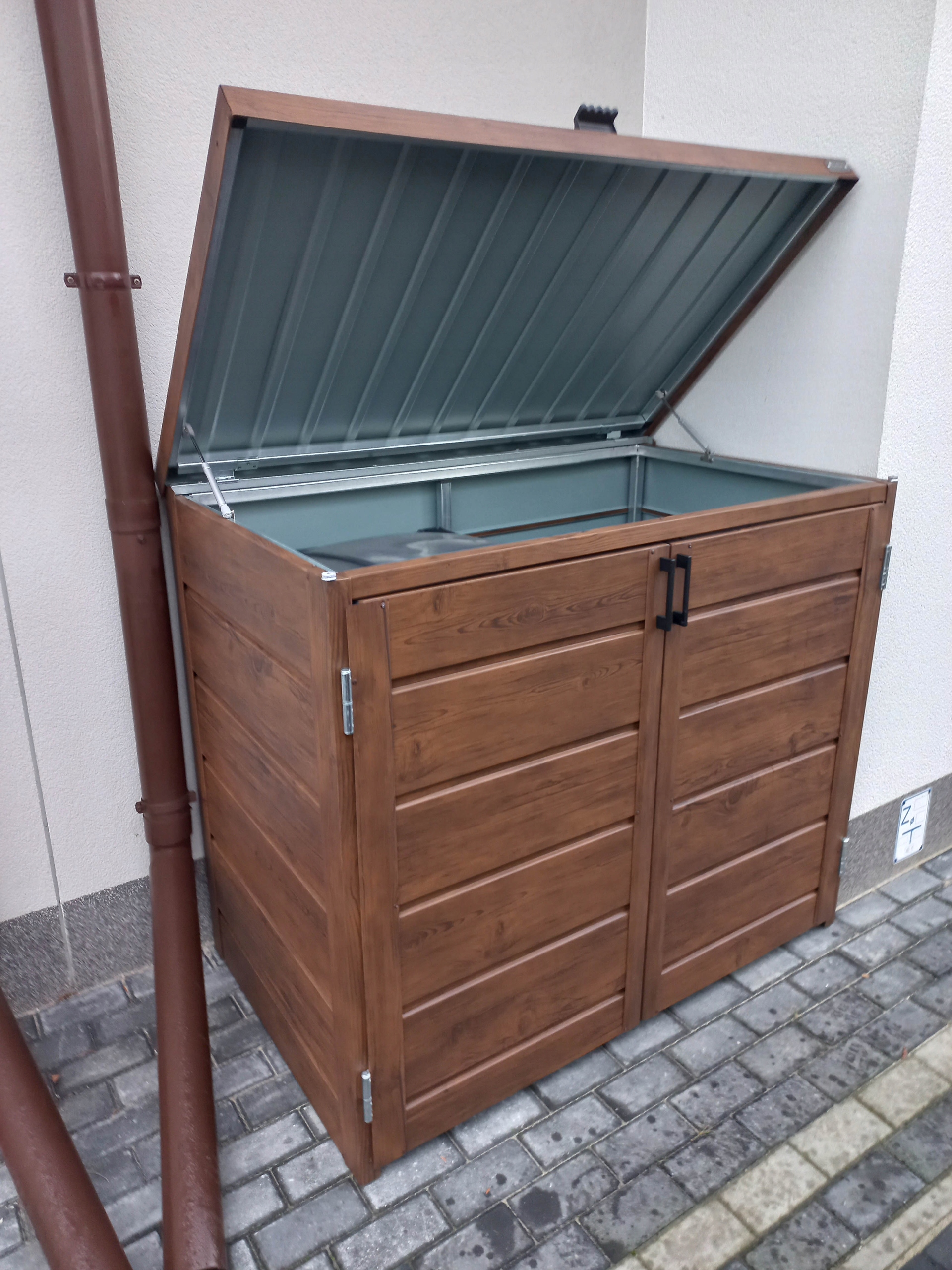 Конструкція урни для сміття, корпус урни 140х80х120 см 2х240л темний горіх