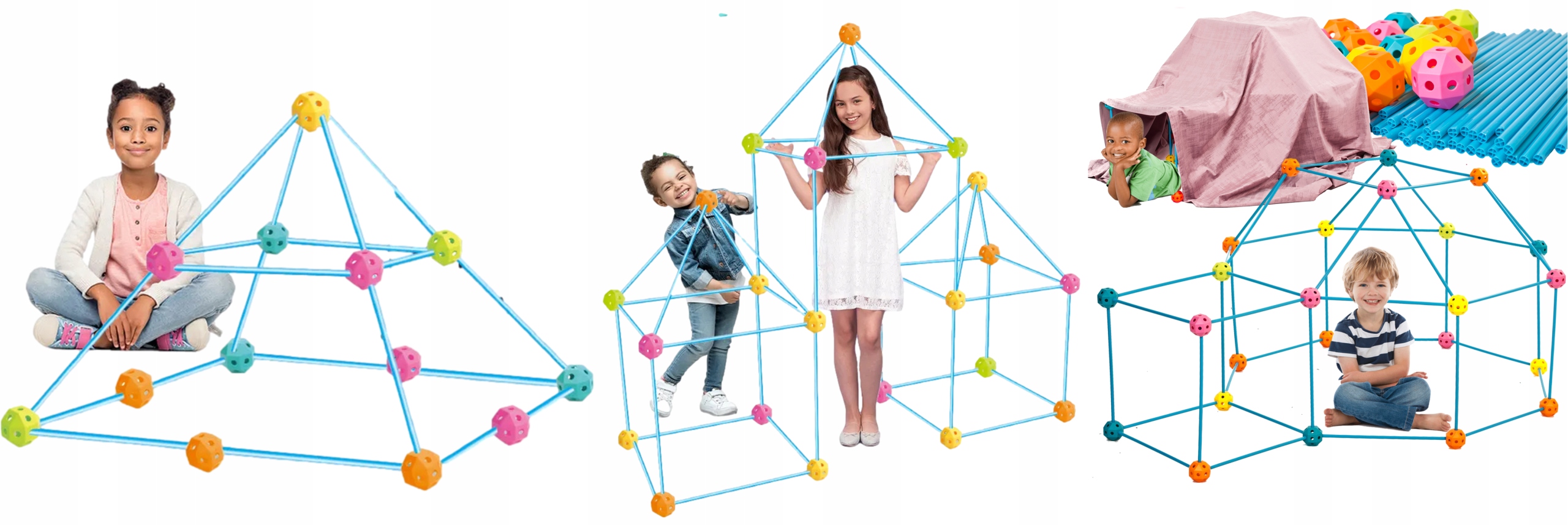 Набір дозволяє вашій дитині втілити в життя свої наймістичніші уяви. Ідеально підходить для ігор у приміщенні та на вулиці, дитина може легко та інтуїтивно крутити кульки на палицях, щоб створити нескінченну кількість конструкцій для різноманітних будівель: БУДИНКИ, ЗАМКИ, НАМЕТКИ, КОРАБЛІ, БАЗИ ТА БАГАТО ІНШИХ.