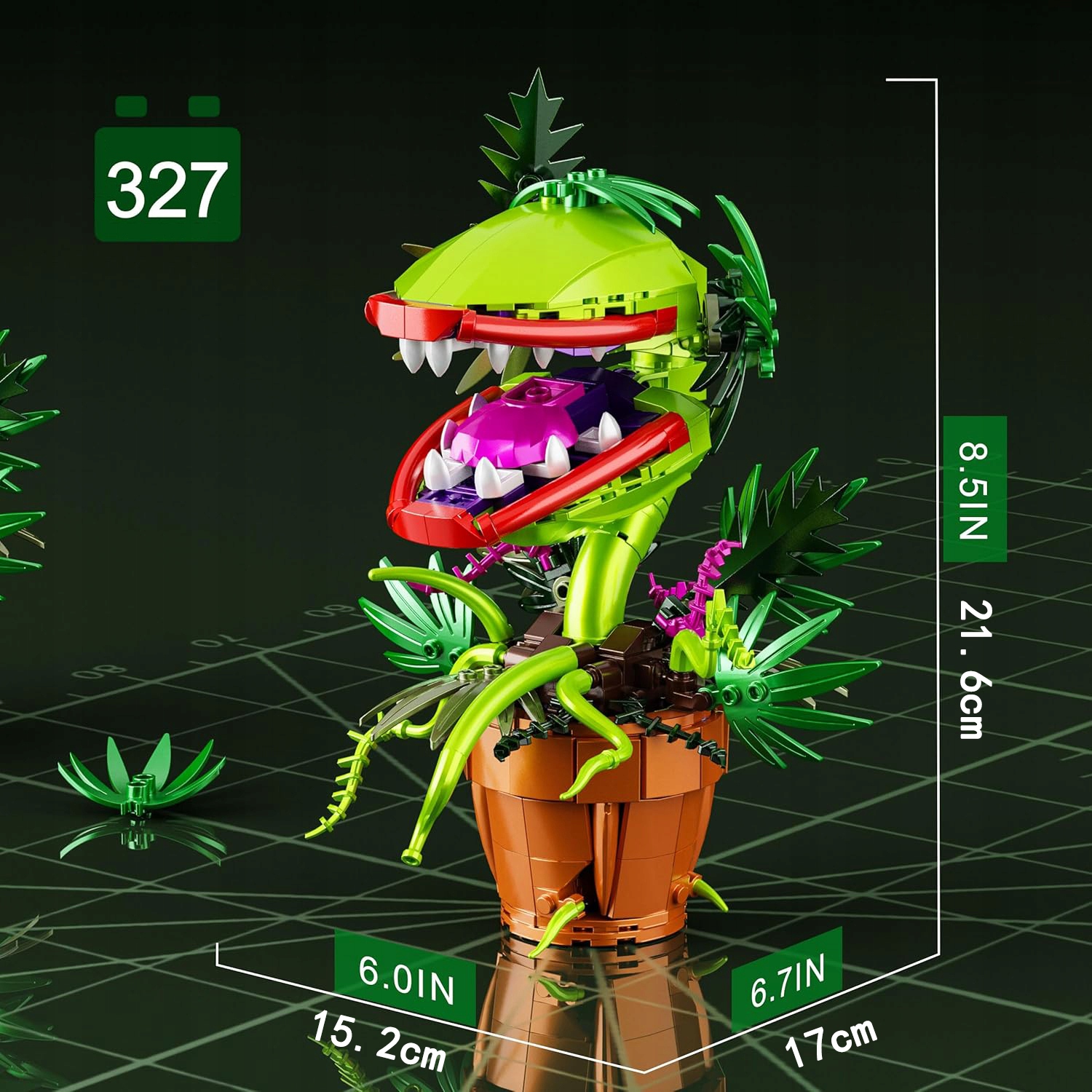 💎💎 НАБІР БУДІВЕЛЬНИХ БЛОКІВ: Відчуйте жах із набором будівельних блоків «Квітка рослини піранья»! Набір складається з 327 елементів, тому він ідеально підходить як прикраса столу або як відмінне доповнення до декору на Хеллоуїн.