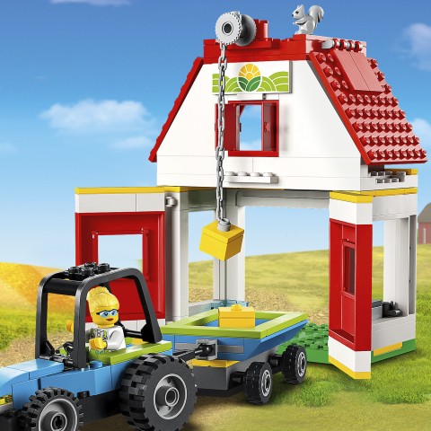 Ідіть до хліва на фермі LEGO® City, де ви можете доглянути вівцю, ягня, свиню, порося та корову. Помийте тварин зі шланга, а потім очистіть їх кал. Доглядайте за рослинами, що ростуть у теплиці. Допоможіть витягти сіно на перший поверх комори та використовуйте лебідку, щоб підняти речі з причепа трактора. З багатьма крутими персонажами, як-от Піч із серіалу «Пригоди в LEGO City», вам ніколи не буде нудно!
