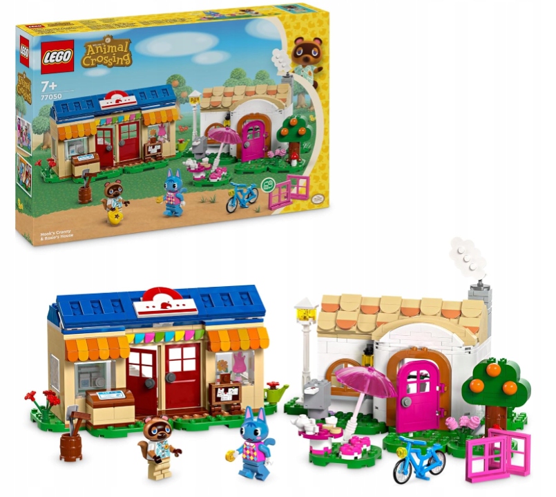 Цей набір стане чудовим подарунком на день народження. ідея для фанатів Animal Crossing. Містить деталі знаменитого магазину з гри, де єнот Том Нук продає такі предмети, як картка рецептів, насіння квітів, рибальська наживка та інструменти в обмін на знамениті монети Bells. Потім діти можуть приєднатися до Тома Нука за післяобіднім чаєм у будинку кота Розі, який також сповнений впізнаваних елементів.