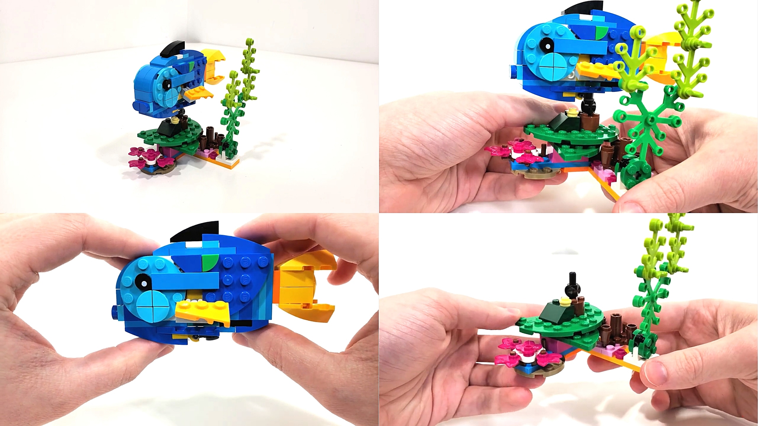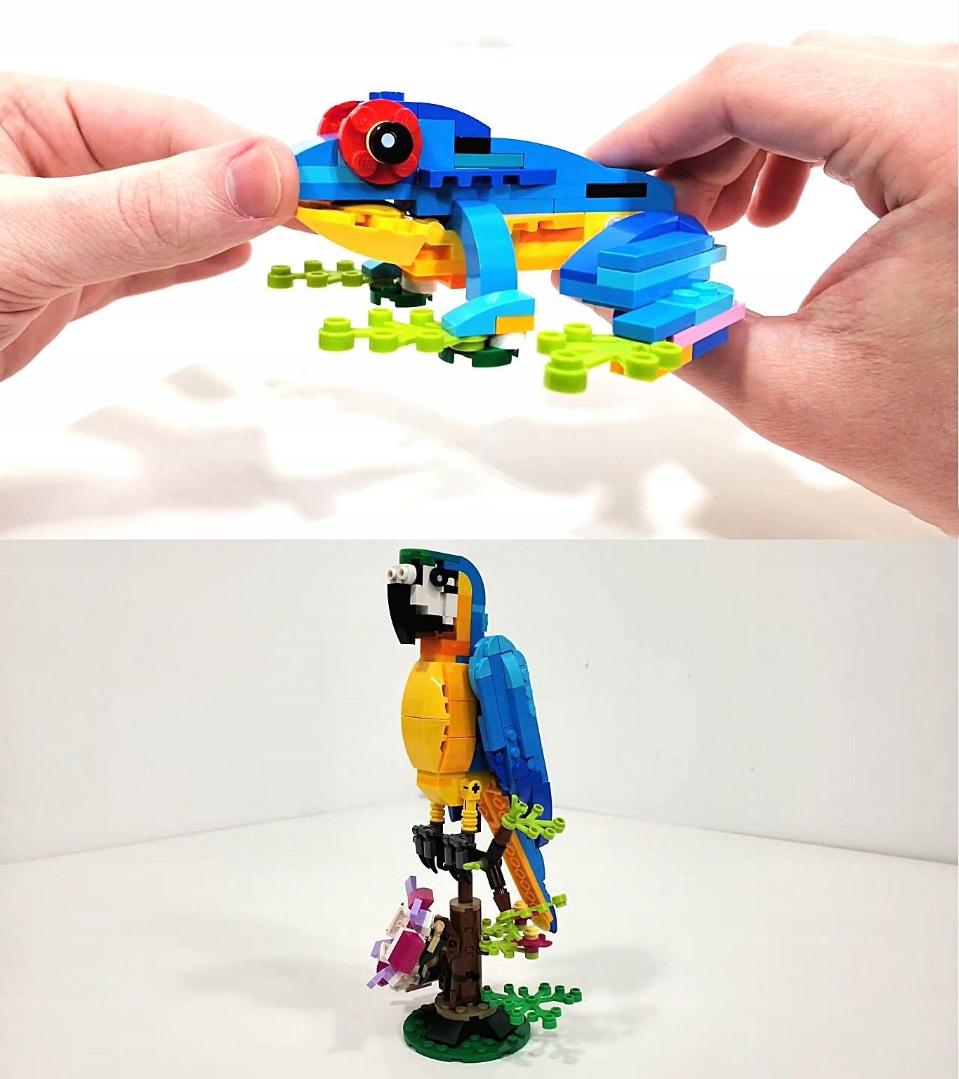 ❤️ Діти можуть перетворити папугу на іграшкову жабу з рухомими лапками або на LEGO рибку з рухомими плавниками, яка плаває на дні моря і створюйте чудові, творчі пригоди.