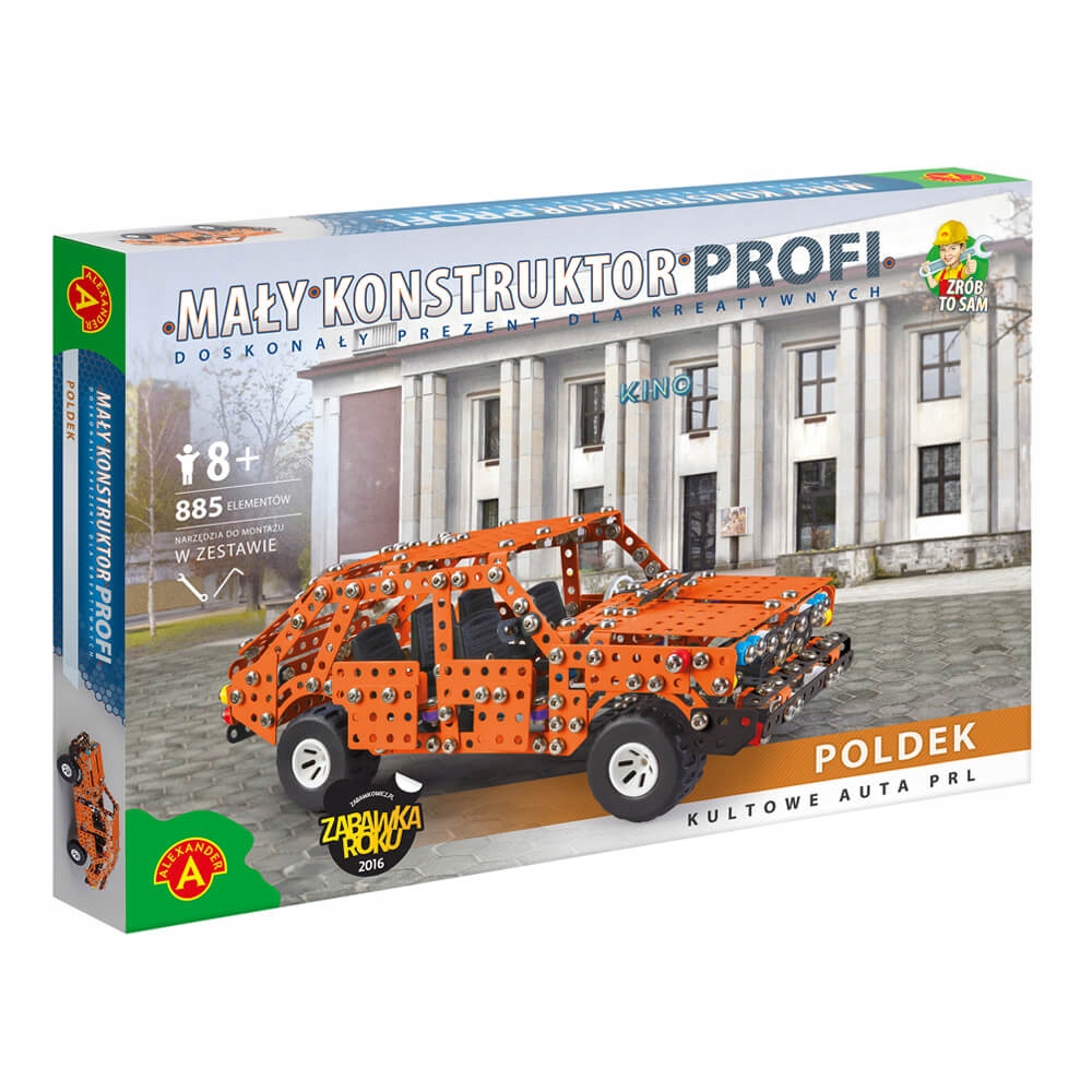 "Маленький конструктор" - іграшка для самостійного збирання. Кожна модель складається з металевих елементів різних розмірів і форм, а також збагачена кольоровими пластиковими елементами. Набір оснащений інструментами, які можна використовувати для складання та розбирання автомобіля. Елементи наборів можна комбінувати для створення власних конструкцій. Іграшки з цієї серії розвивають ручні навички, просторову уяву, технічні навички та терпіння, а також допомагають формувати процес пам'яті. Це ідеальна іграшка для майбутніх інженерів та інших.