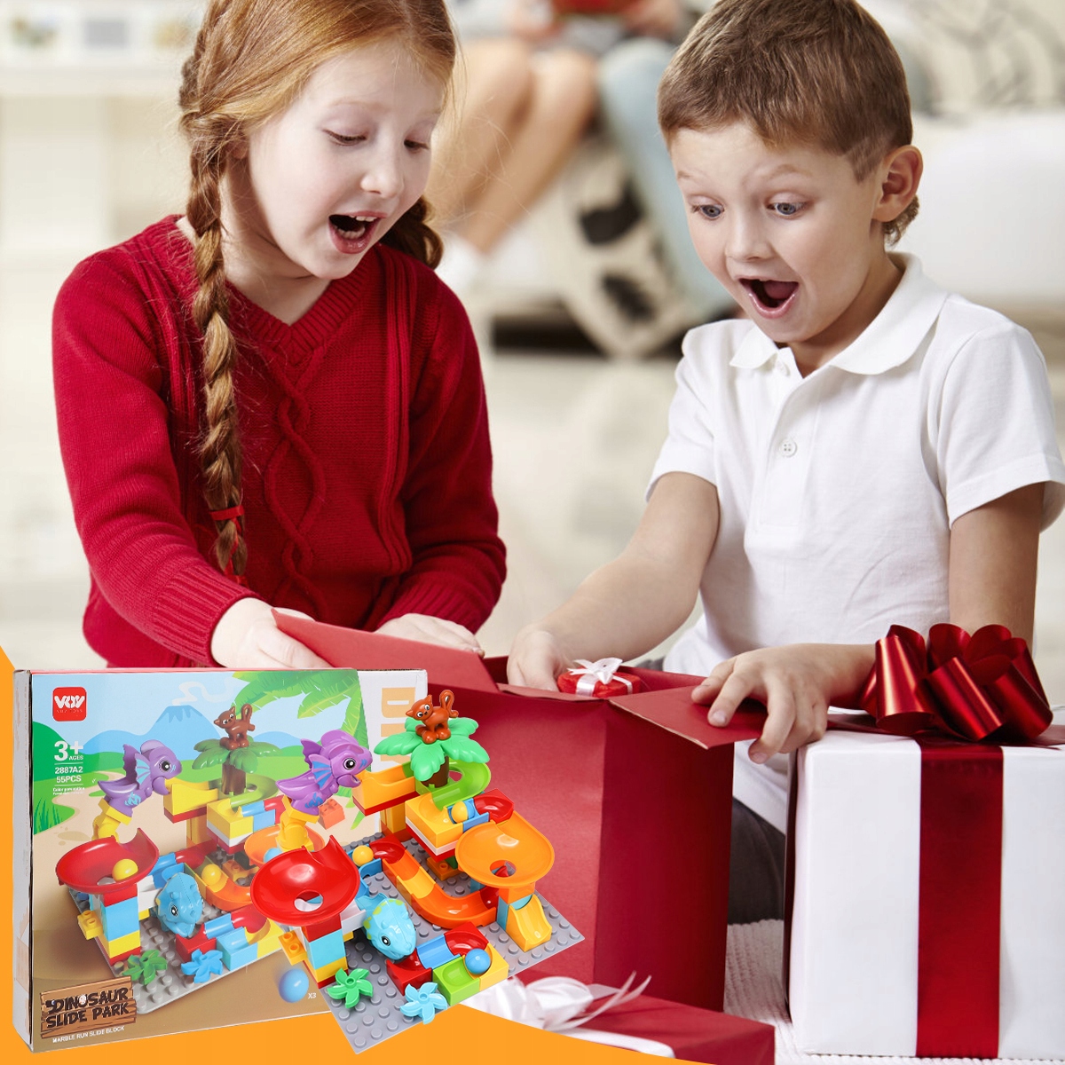 Набір з м’ячем і доріжкою для динозаврів, іграшка STEM для хлопчиків і дівчаток від 3 років, гоночна доріжка з 55 елементів із великими кубиками, розвиваюча іграшка для хлопчиків і дівчаток від 3 до 8 років🌟🌟🌟