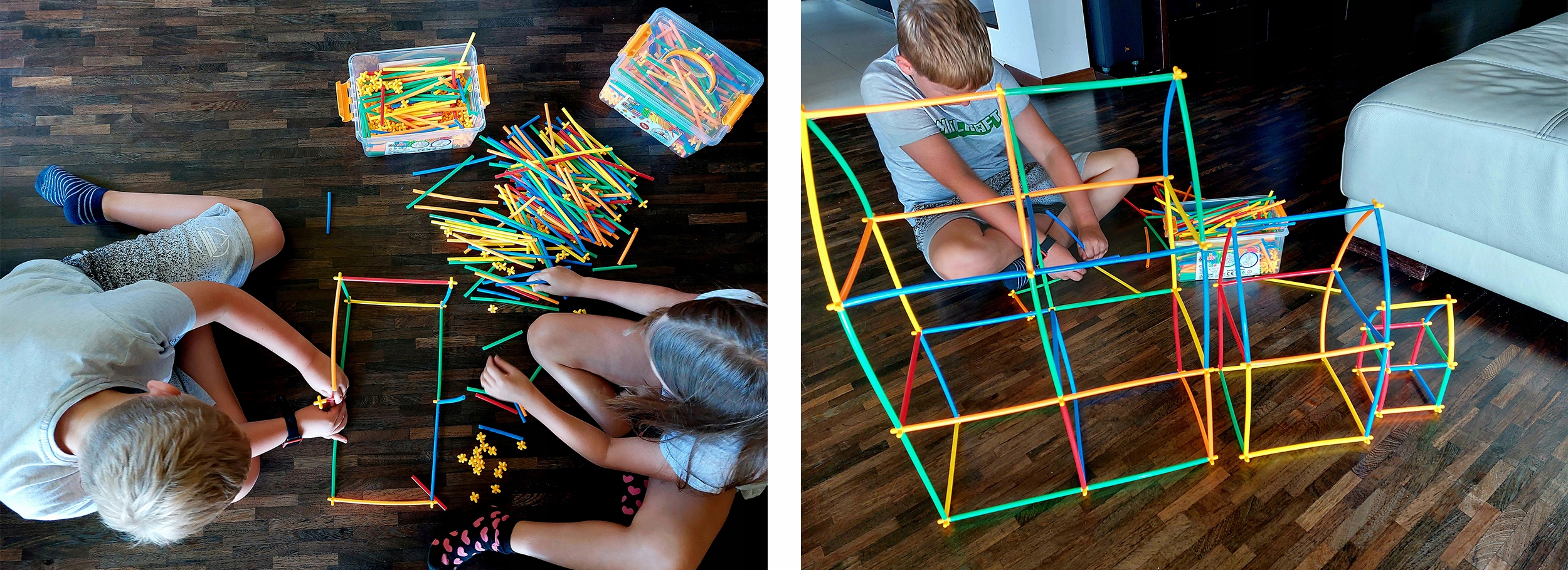 Пазл із різнокольорових трубочок і з’єднувачів, завдяки яким маленький підрядник створить чудові просторові будівлі та споруди.