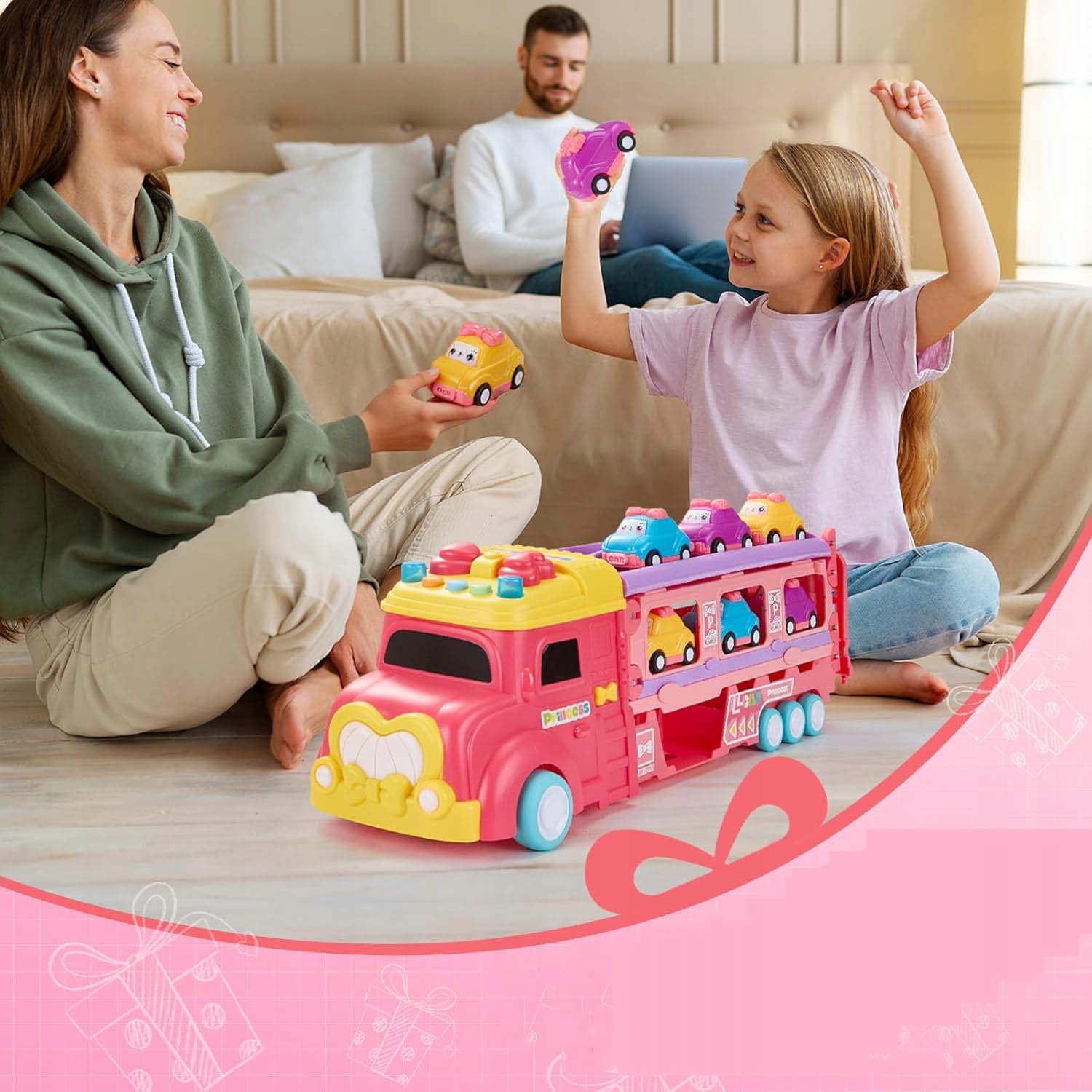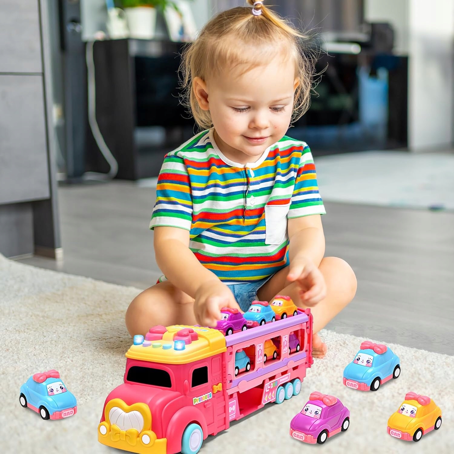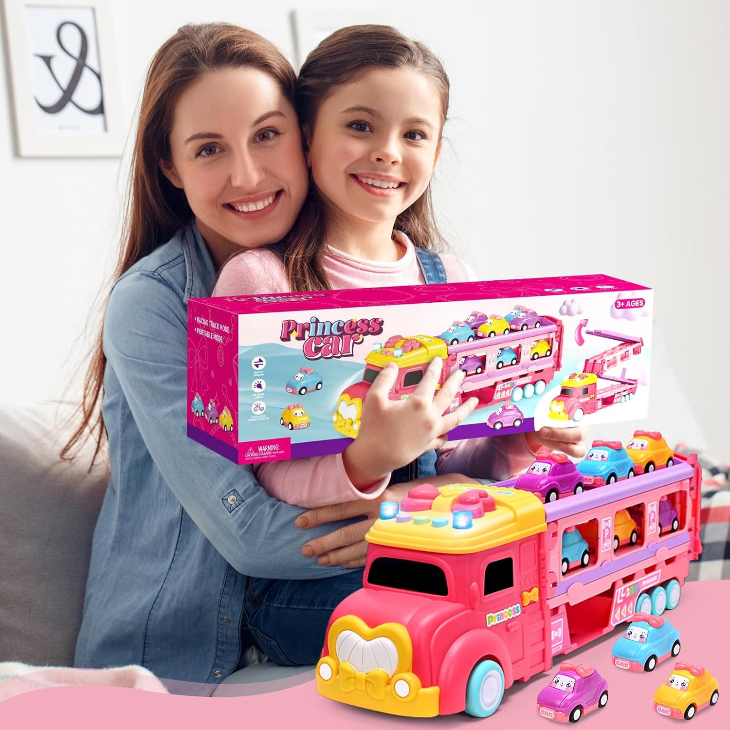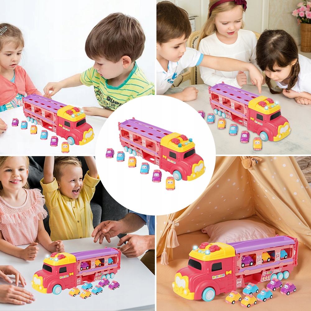 💖💖Включає 1 автоперевізник 15,5 x 4,5 x 5 дюймів і 6 міні-інерційних автомобілів. Інерційна машинка самостійно рухається вперед на велику відстань, коли ви відтягуєте її назад і відпускаєте