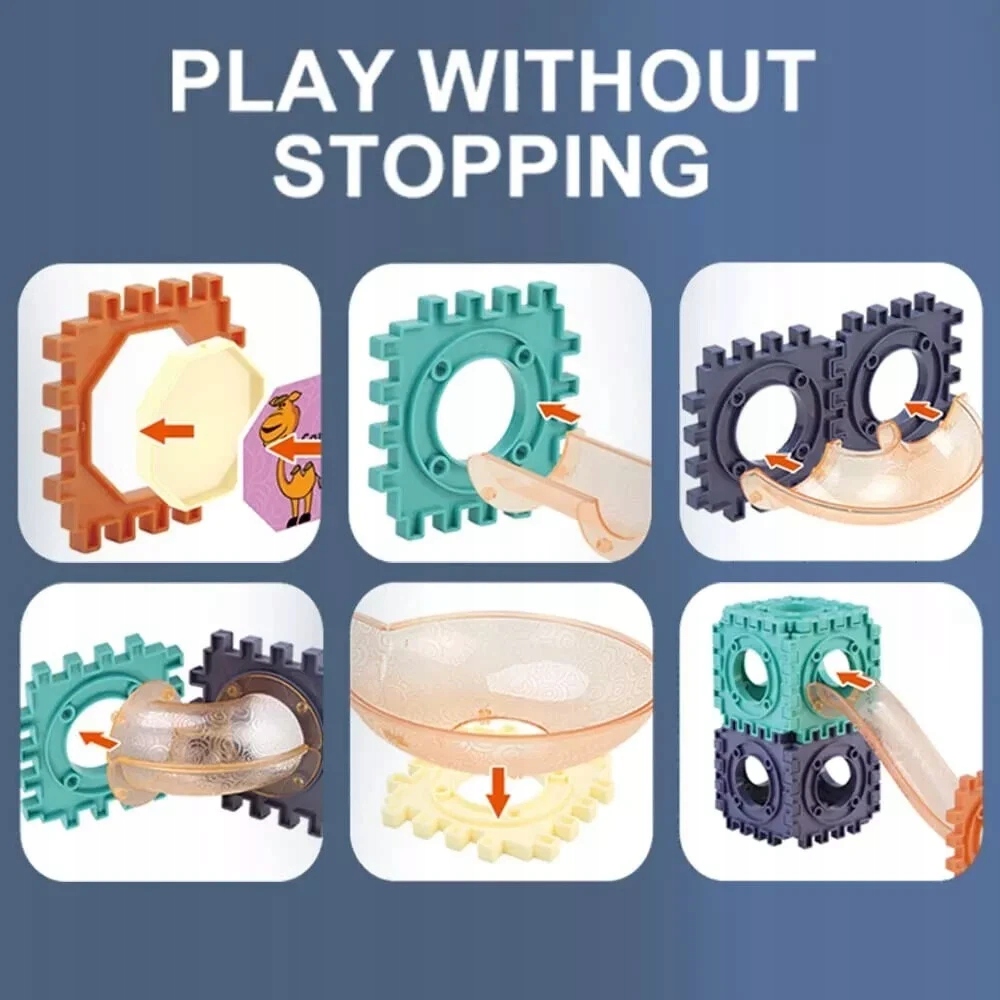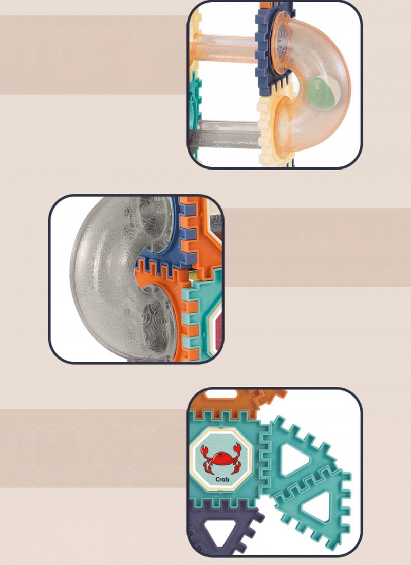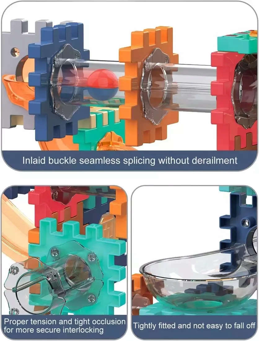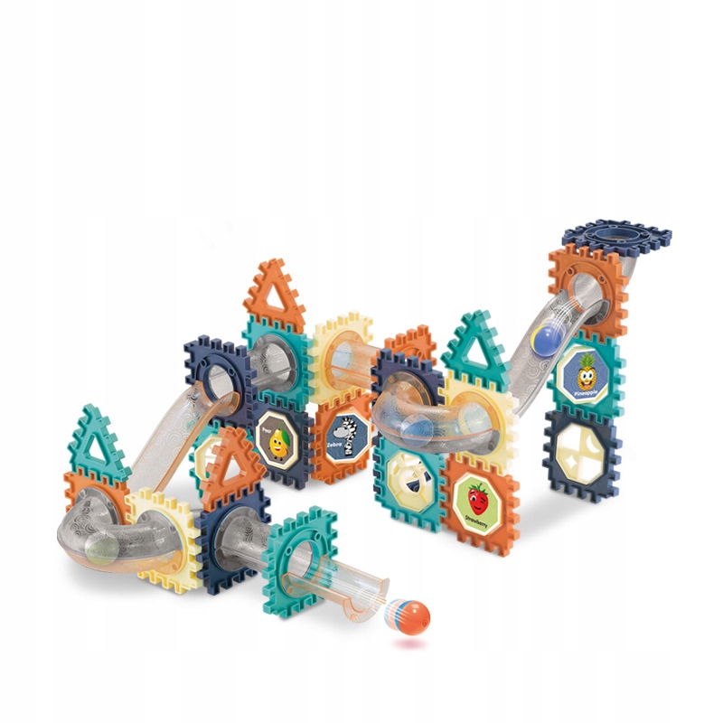 Створіть свою власну барвисту трасу для м’яча та відкрийте для себе захопливу розвагу, повну руху та емоцій! Цей великий набір містить аж 260 різноманітних елементів, які з'єднані між собою за допомогою спеціальних виступів - стабільно і надійно, як шестерінки. Завдяки їм діти можуть створювати незвичайні конструкції: закручені спіралі, довгі спуски, тунелі та мости, по яких м'ячі летять із запаморочливою швидкістю.