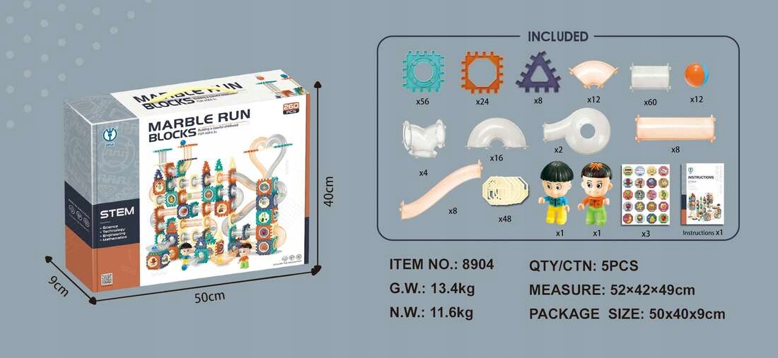 ✨ Marble Run Blocks – доріжка для м’яча на 260 елементів 🎢🧩