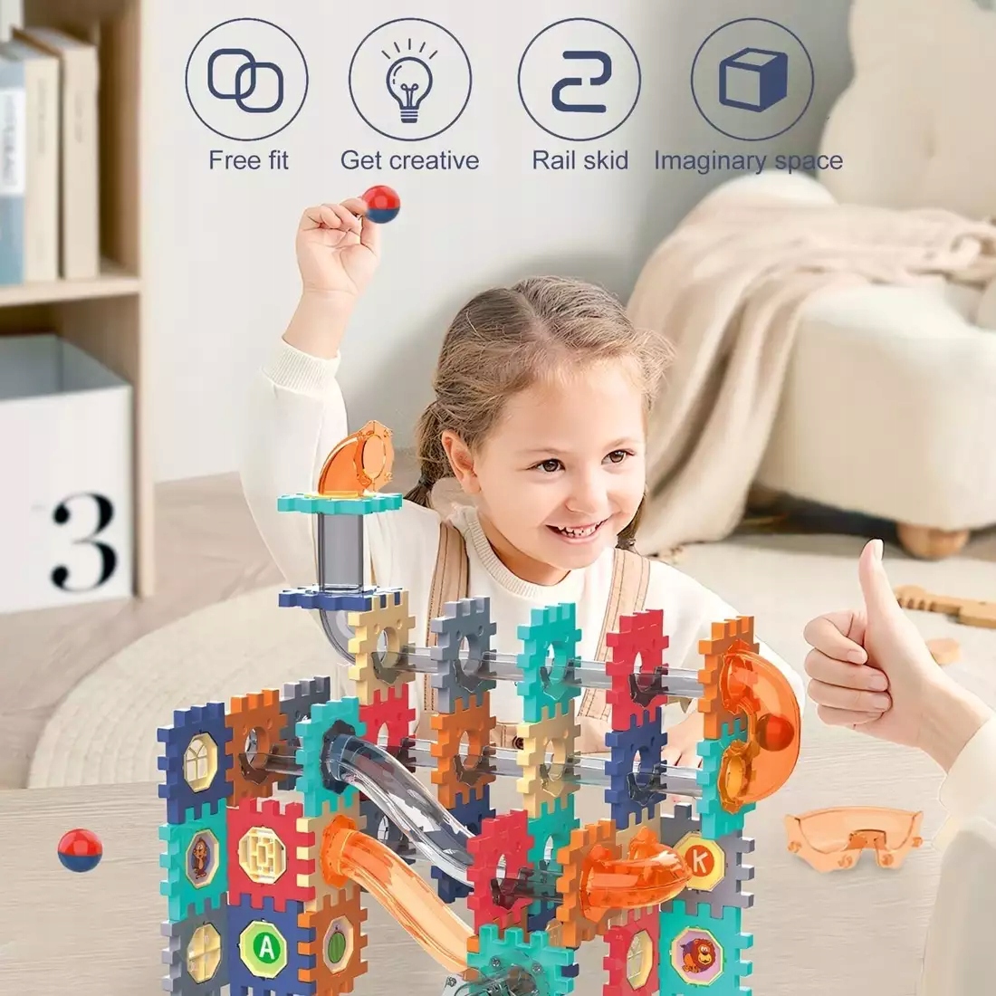 👉 Ідеальний набір для діти від 3 років - поєднує в собі креативне будівництво з захоплюючим задоволенням від перегляду гонок з м'ячем! 🚀