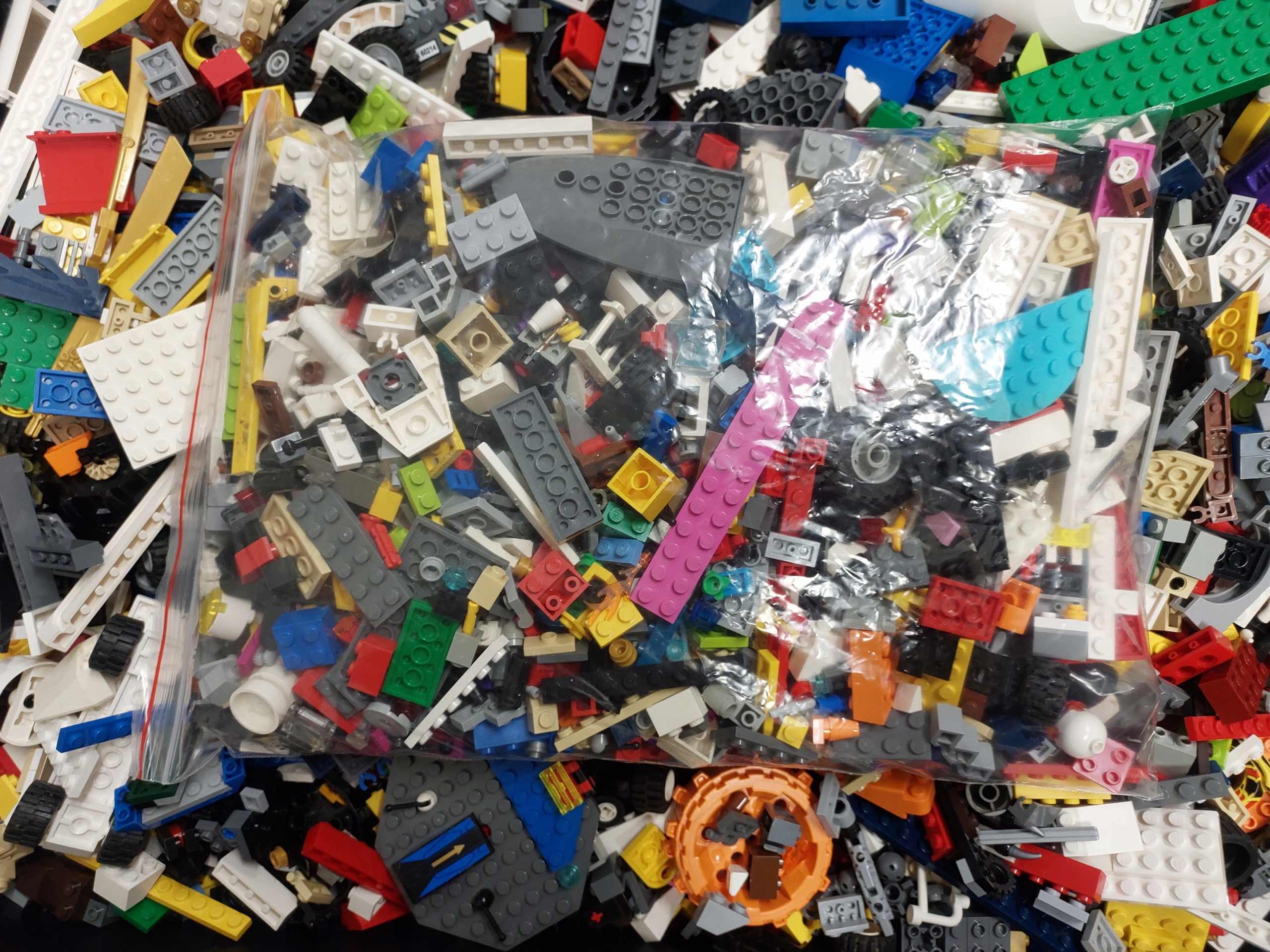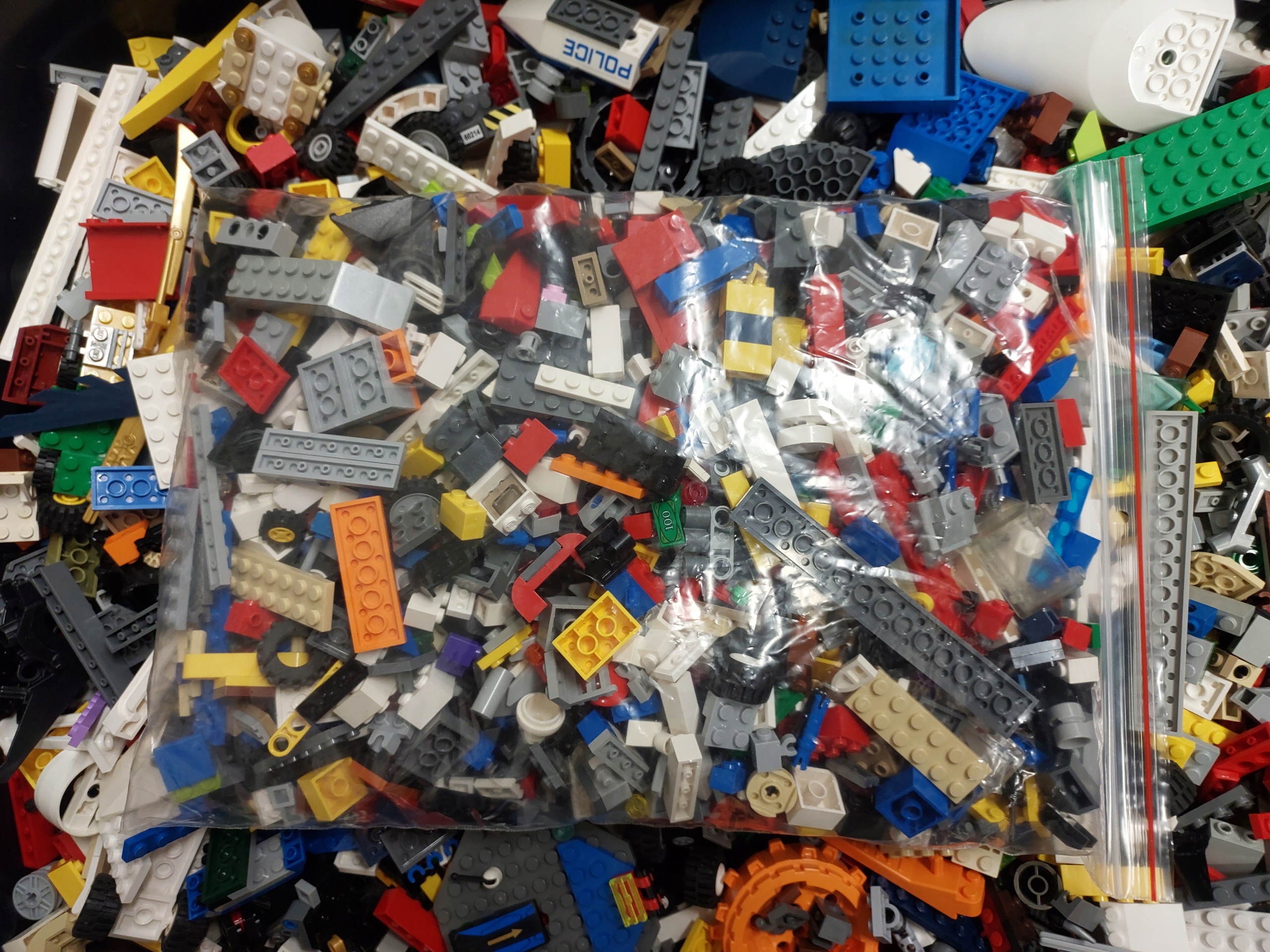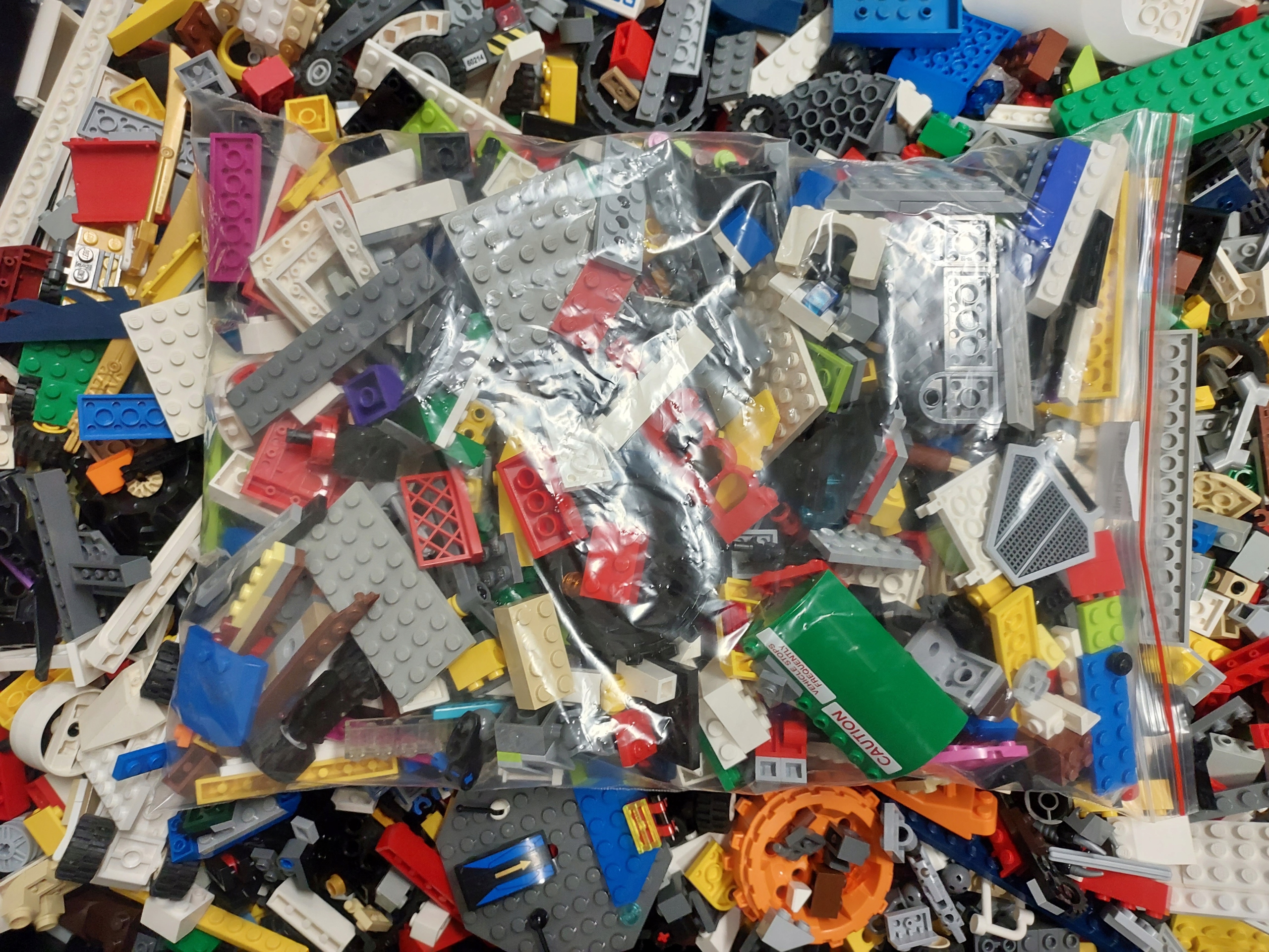 На останніх фотографіях зображено мішки з випадково упакованим кілограмом кубиків Lego.