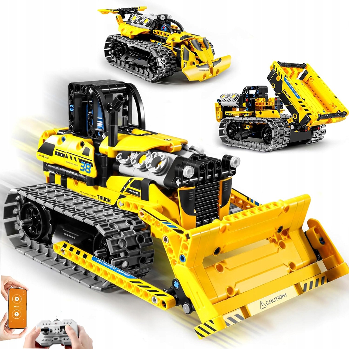 Набір іграшок-конструкторів 3 в 1. Інженерна машина на радіоуправлінні з акумулятором, 452 деталі, гусенична машина-самоскид-бульдозер, конструктори STEM Technic, подарунки для хлопчиків віком від 6 до 12 років