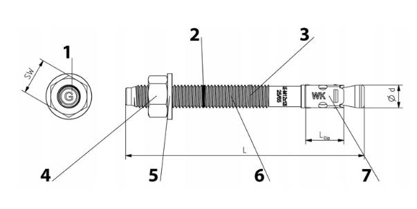складається з різьбової оправки, закінченої конусом, що розповсюджується, діапазоном розширення та гайкою шестикутника та колодкою. Він виготовлений з низької вуглецевої сталі і покритий шаром оцинкованого, що забезпечує захист від корозій. Прикріплення відбувається шляхом затягування гайки правильним моментом, що спричиняє зміщення діапазону розширення та постійне кріплення в землі.