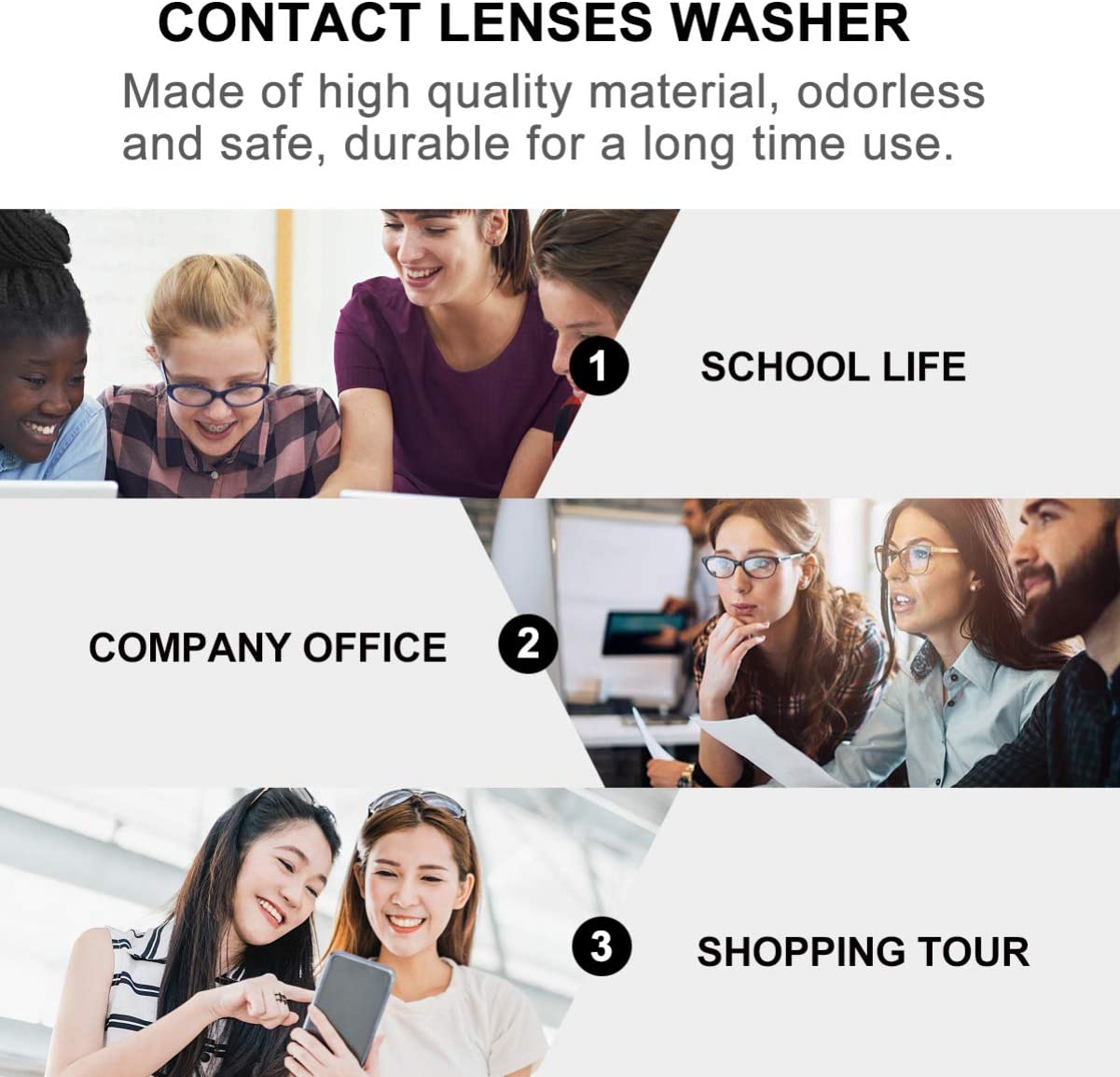 Легкий і портативний, зручний у транспортуванні та використанні. Незамінний контейнер для тих, хто носить контактні лінзи. Чудовий пристрій для чищення контактних лінз. Хороший помічник для підтримки чистоти ваших лінз. Вони ідеально підходять для щоденного догляду за контактними лінзами і приємні в носінні. Виготовлений з високоякісного матеріалу, без запаху, безпечний, довговічний.