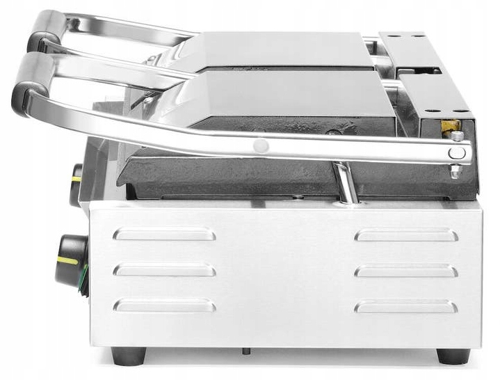 Професійний контактний гриль Hendi, оснащений подвійною підставкою для грилю, на одній стороні.