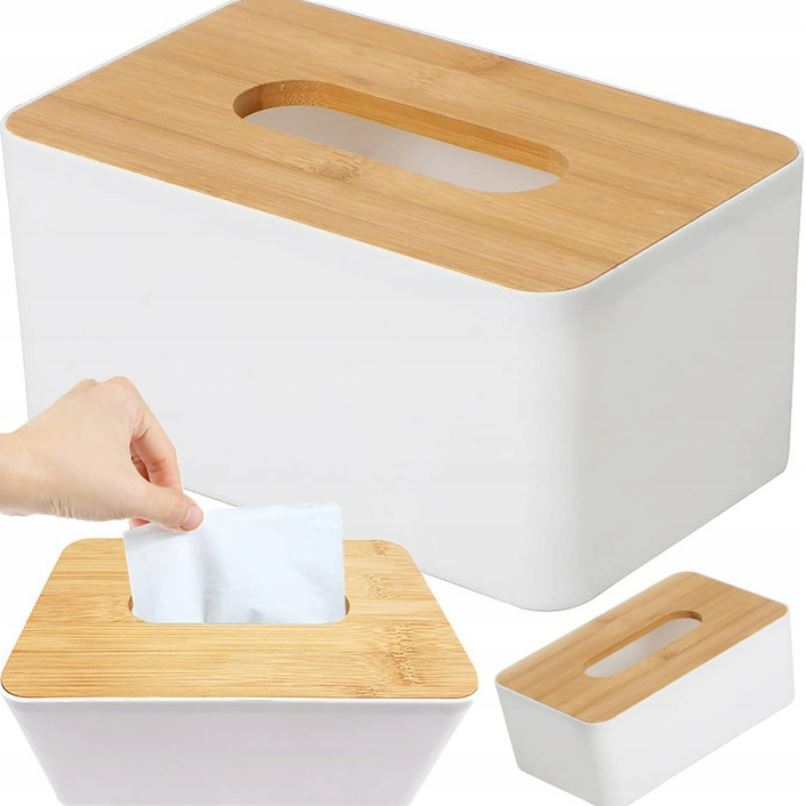 HANKEY CONTAINER Tissue box BAMBOO FEEDER, WHITE ORGANIZER