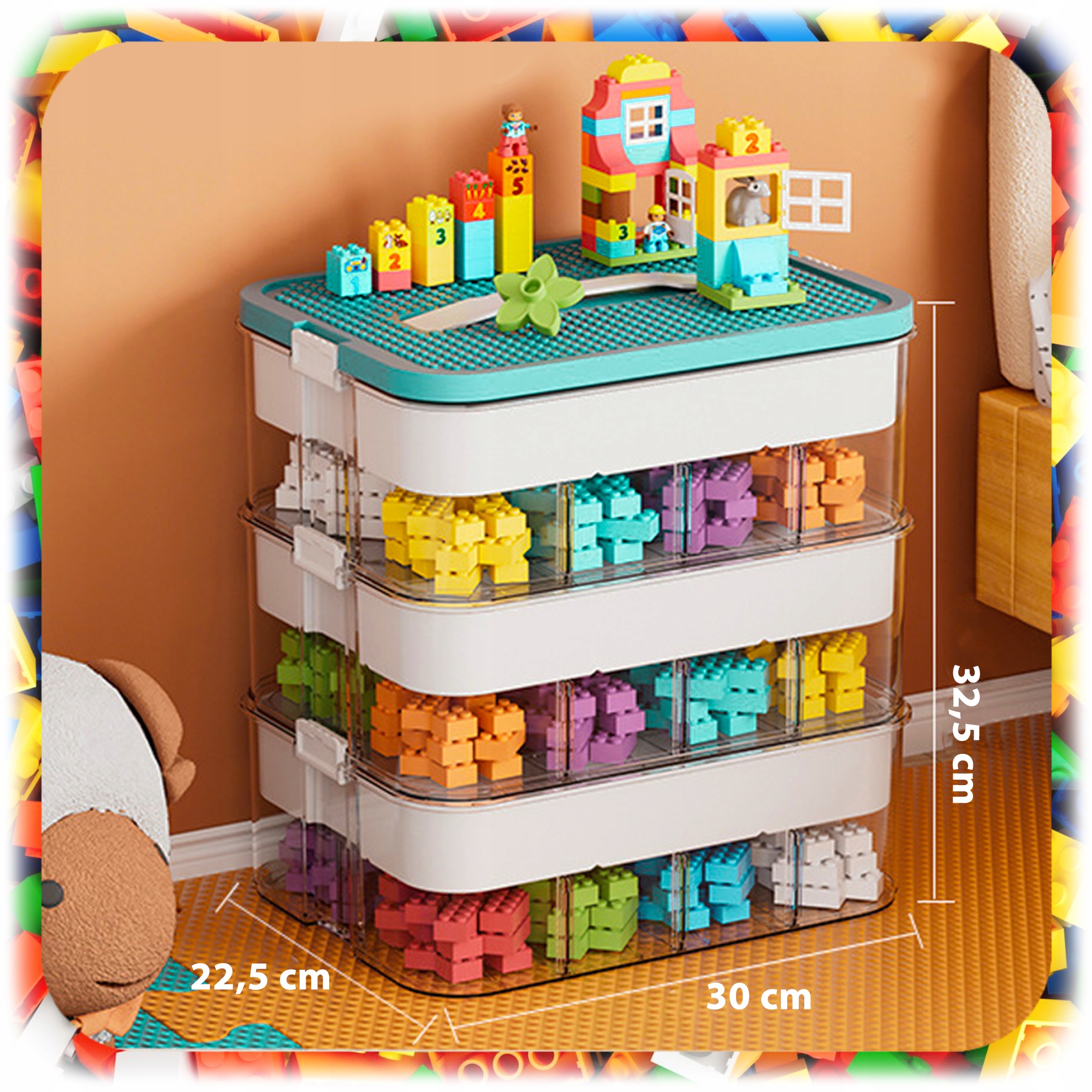 ✏ кришка з вистуками, ідеально підходить для блоків Lego, перетворює контейнер на додатковий простір для розваги - ваша дитина може побудувати безпосередньо на ньому.