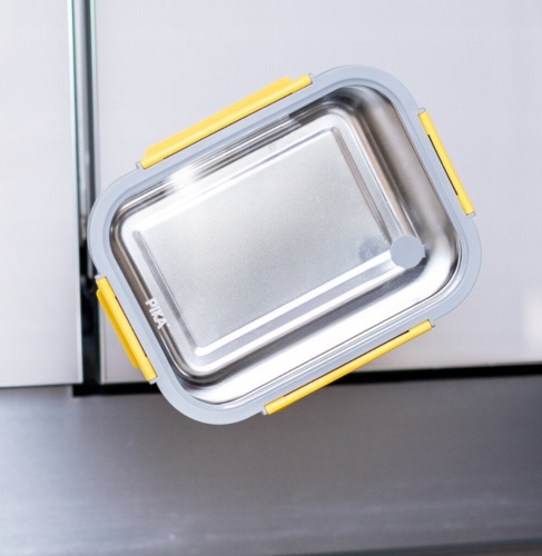 Легкість сталь нержавіюча стальпоєднується зідеально герметичною кришкою іззагартованого складозволяєлегко транспортуватиконтейнер у сумка чи рюкзак без ризику витоку.
