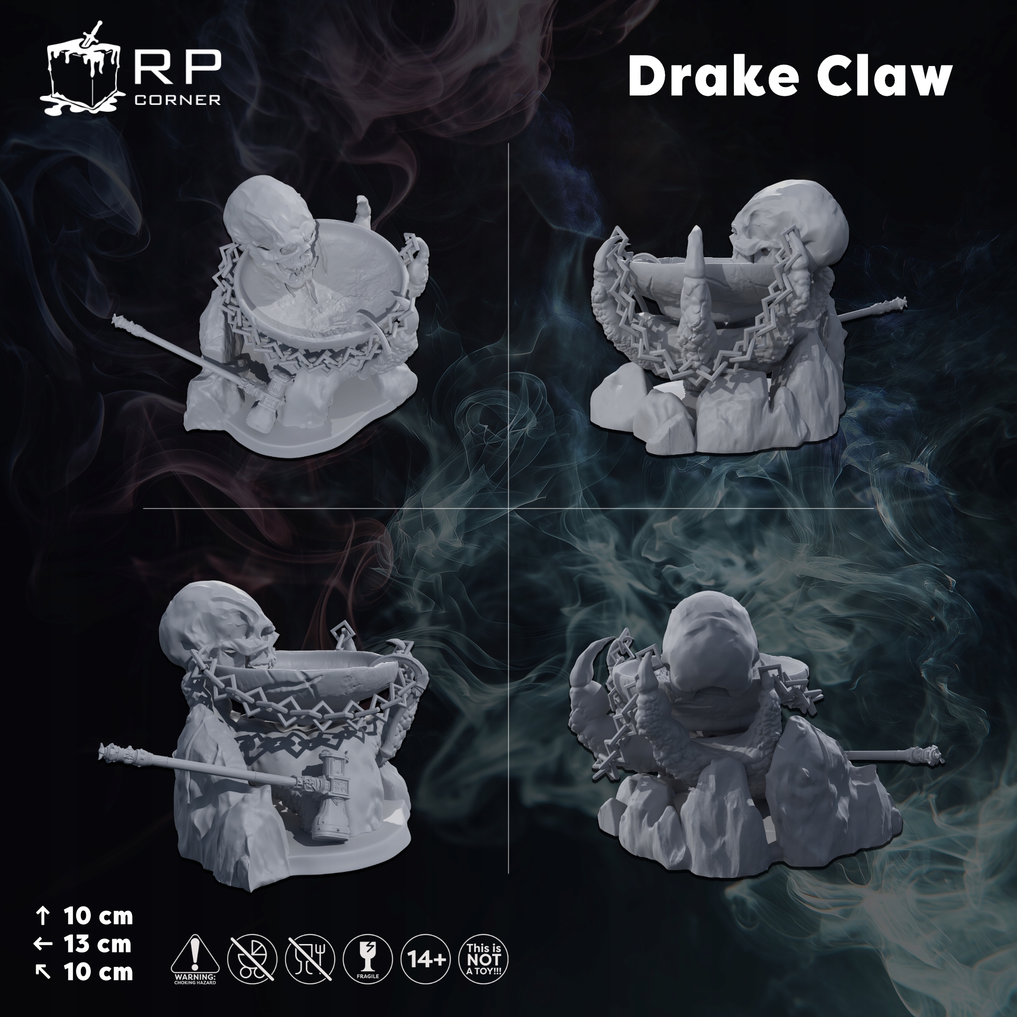 Додайте трохи атмосфери своїм рольовим сеансам за допомогою цього вражаючого контейнера «Кіготь Дрейка», який ідеально підходить для зберігання кубиків, коли ними не користуєтеся. Розроблений для гравців у DnD, Pathfinder та інші рольові ігри, він чудово виглядає та ідеально вписується в нашу вежу з кубиками Fire Drake.