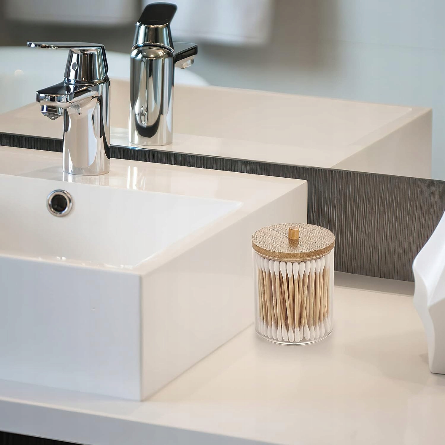 💅🏻💅🏻 ПРОЗОРА КОРОБКА ДЛЯ ЗБЕРІГАННЯ ватних ватних паличок із бамбуковою кришкою ДЛЯ МАКІЯЖНИХ ПОДУШОК, ПАЛИЧОК ЗУБНОЇ НИТКИ, ГУМОК ДЛЯ ВОЛОССЯ.