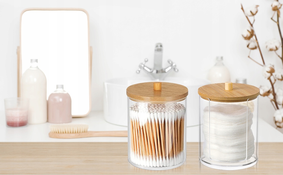 Ці контейнери для ватних дисків є чудовими декоративними предметами, які підходять до наборів аксесуарів для більшості прикрас для дому, наприклад туалетних засобів.
