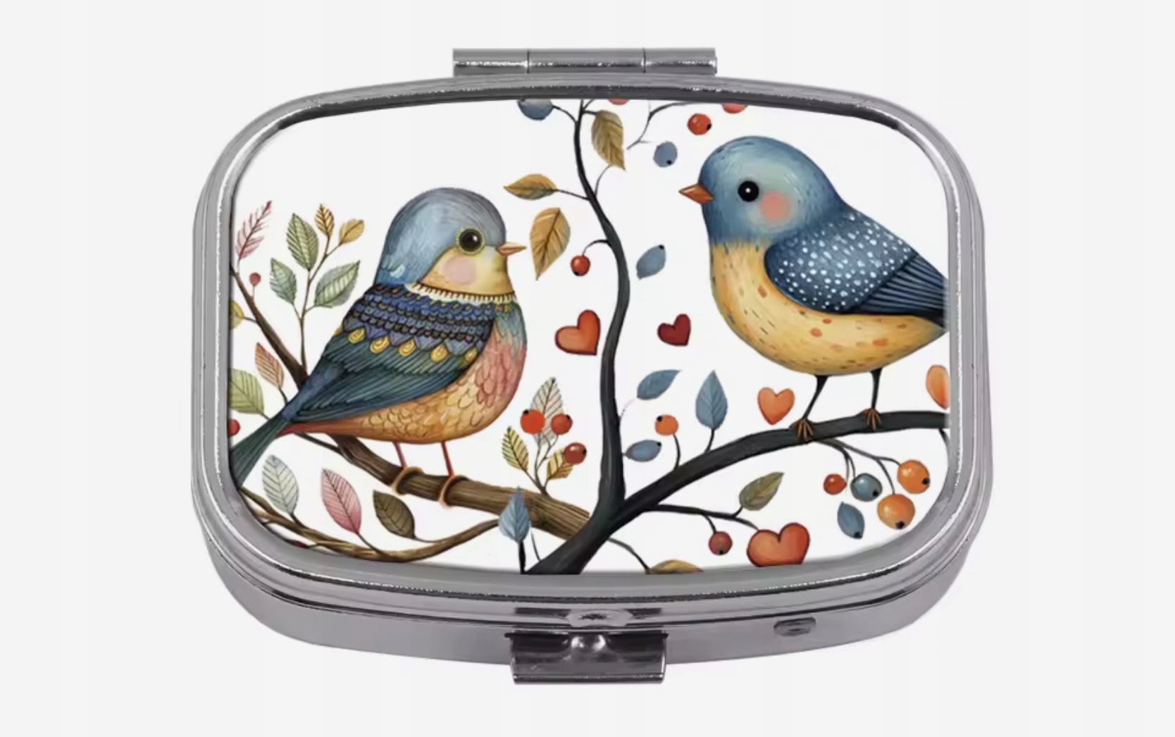 Красива, маленька коробка, металева касета. Організатор Pocket "Shell" розділений на 2 частини, для зберігання таблеток, таблеток.