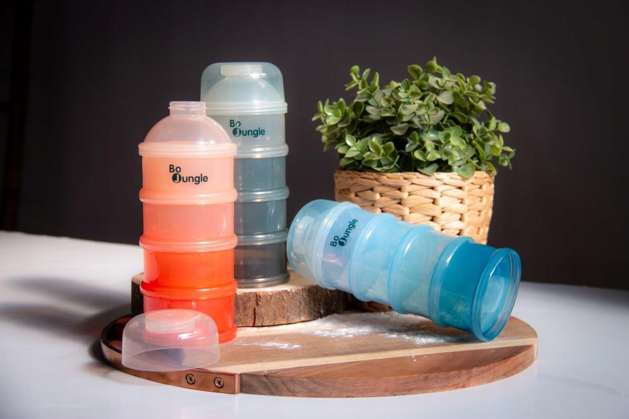 Контейнер для сухого молока Bo Jungle — це дуже зручне рішення. Це дозволяє підготувати відповідні порції сухого молока заздалегідь, гігієнічно, щоб використовувати їх пізніше вдома чи поза домом.