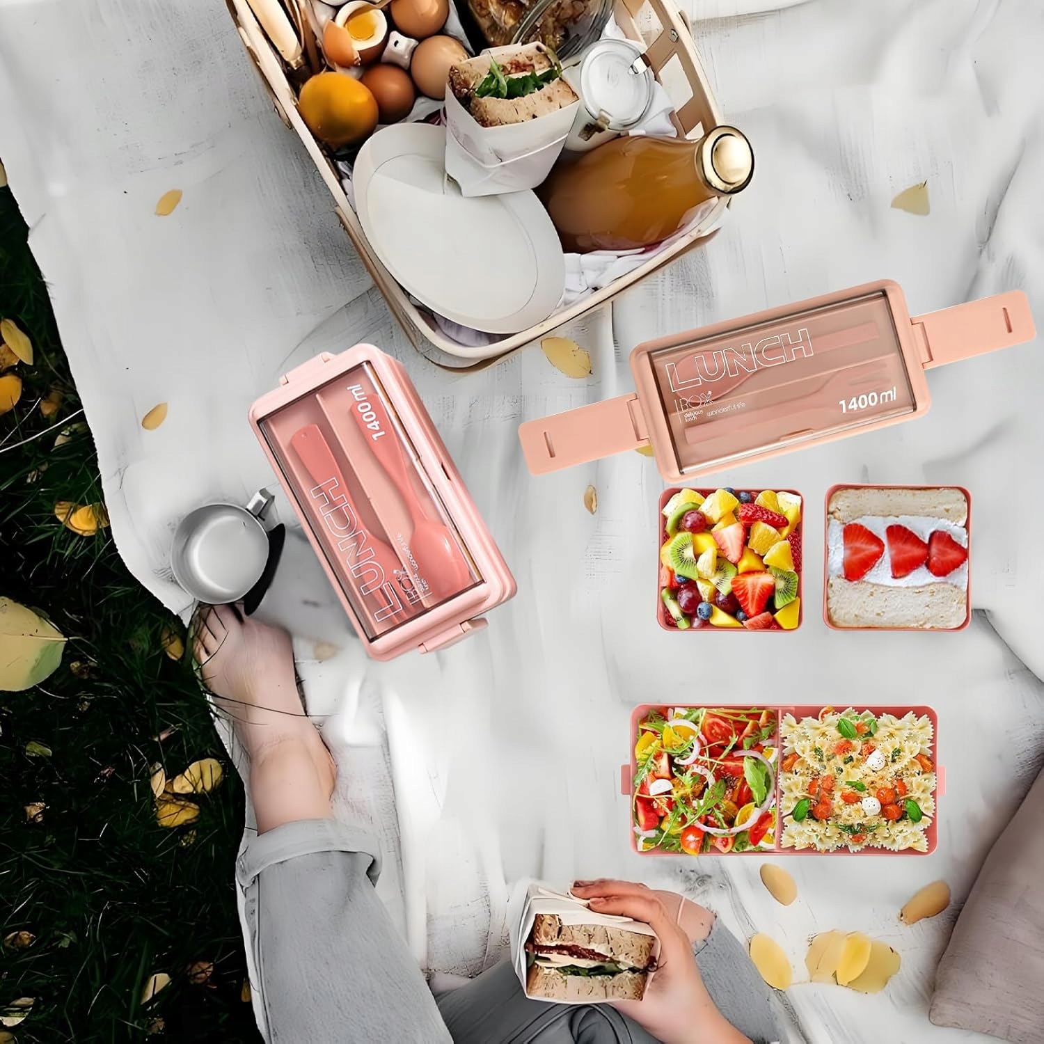 Контейнер для обіду для робочої школи 1400 мл перегородки + столові прилади