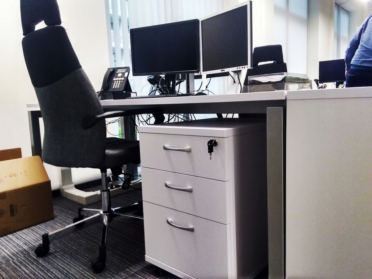офісний контейнер під столом з ящиками на колесах, закритих із замком Кальвадос