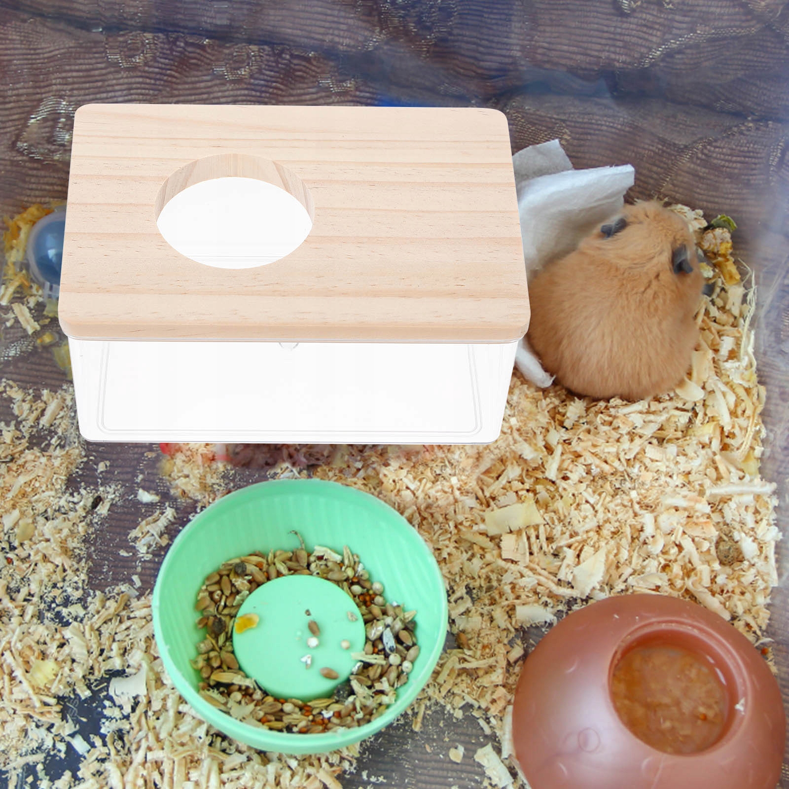 Після того, як помістити пісок у прозорий контейнер для піщаної ванни, його можна використовувати не лише як ванну кімнату для хом’яків, туалет для хом’яків, інструменти для риття хом’яків, щоб відповідати природі маленьких тварин, які копають пісок і свердлять. Пісочна ванна для хом'яків виготовлена з акрилу та дерева. Забезпечте своєму хом’яку чудове місце для купання в піску. Це сподобається вашому вихованцеві. Розваги для гніздування та відпочинку, забезпечте безпечну ванну для вашого маленького вихованця.