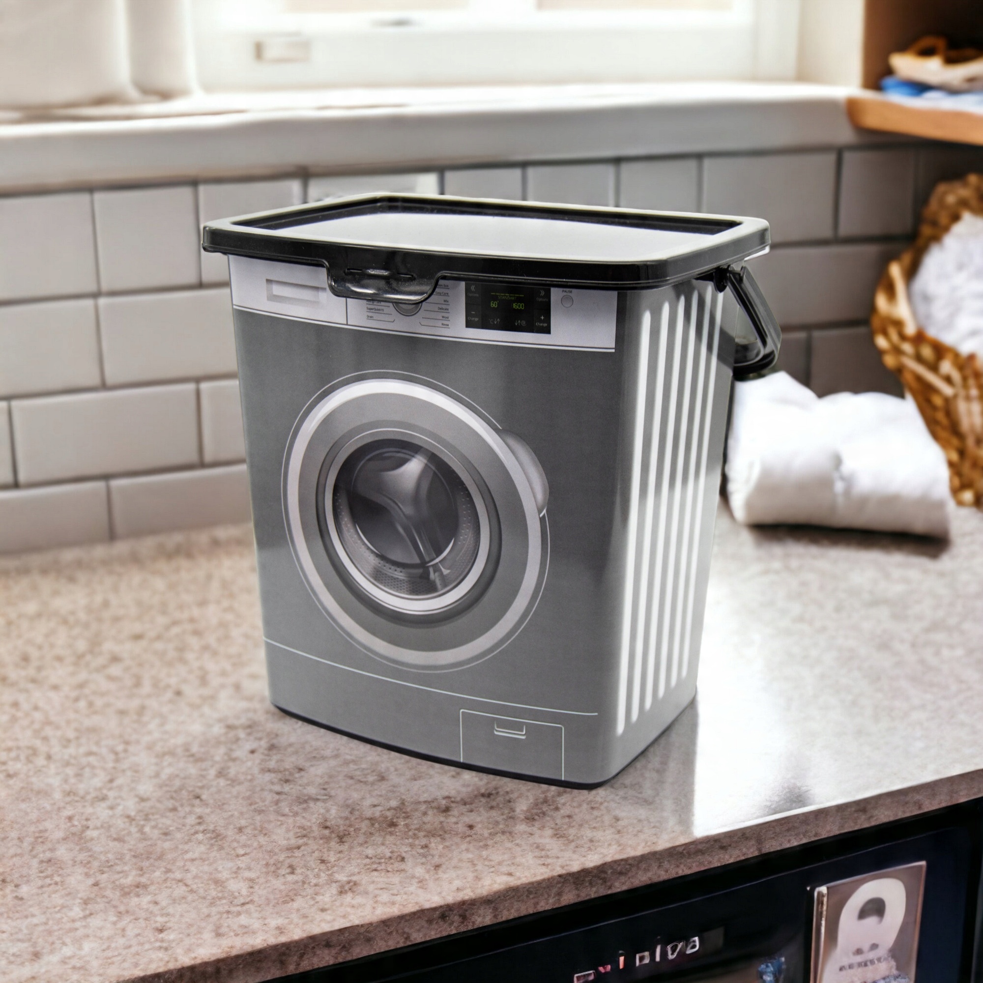 Контейнер для миючого засобу виготовлений з пластику найвищої якості. Зрештою, він призначений як повсякденний предмет, у якому ми можемо зберігати пральний порошок або капсули. Проте, завдяки якості та специфіці виготовлення, ми можемо використовувати його в будь-який інший корисний спосіб. Наприклад, для зберігання іграшок, прикрас або предметів, які ми хочемо вміло сховати.