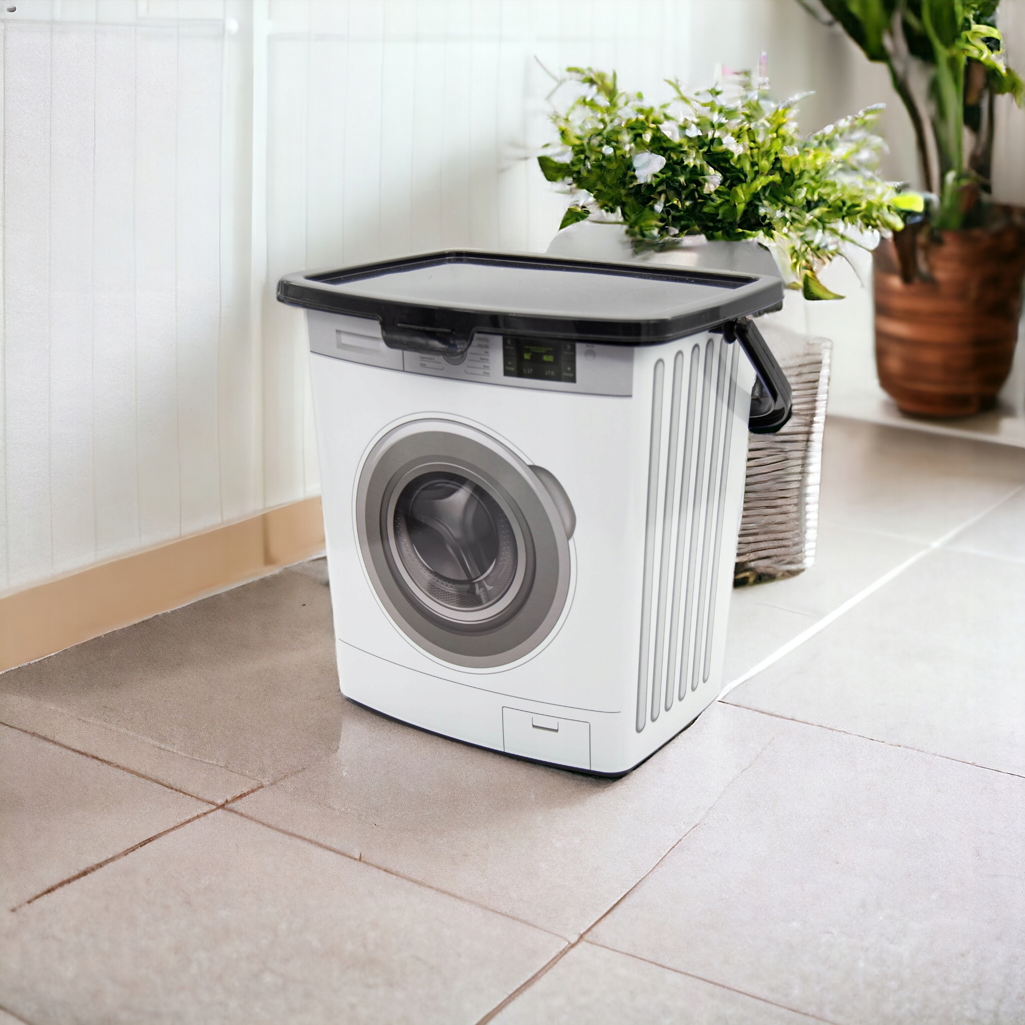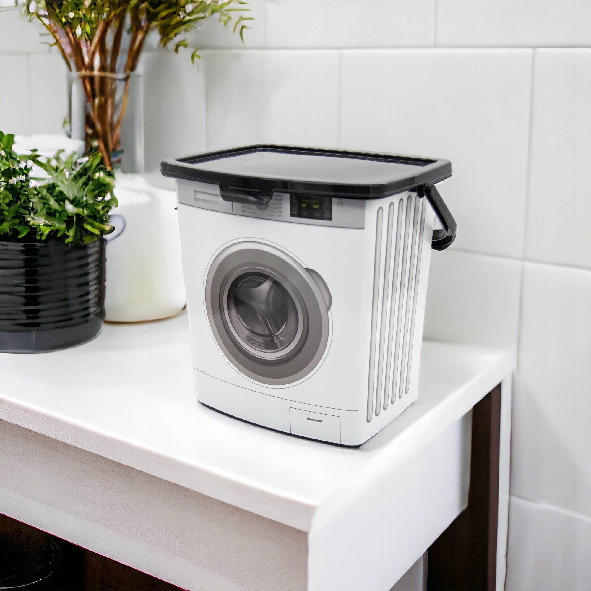 Контейнер для прального засобу виготовлено з пластику найвищої якості. Зрештою, він призначений як повсякденний предмет, у якому ми можемо зберігати пральний порошок або капсули. Проте, завдяки якості та специфіці виготовлення, ми можемо використовувати його в будь-який інший корисний спосіб. Наприклад, для зберігання іграшок, прикрас або предметів, які ми хочемо вміло сховати.
