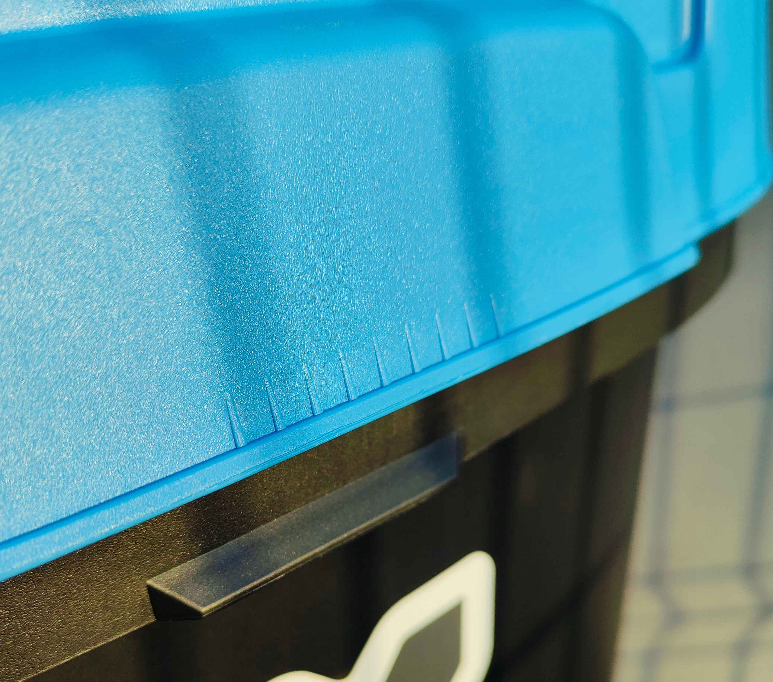 Мобільний кошик оснащений колеса і ручка для транспортування, завдяки чому він завжди може бути там, де потрібно. Його щільна кришка ізолює неприємні запахи, а засув у кришці запобігає її відкриттю під час вітру. Гладко оброблена внутрішня частина дозволяє легко чистити.