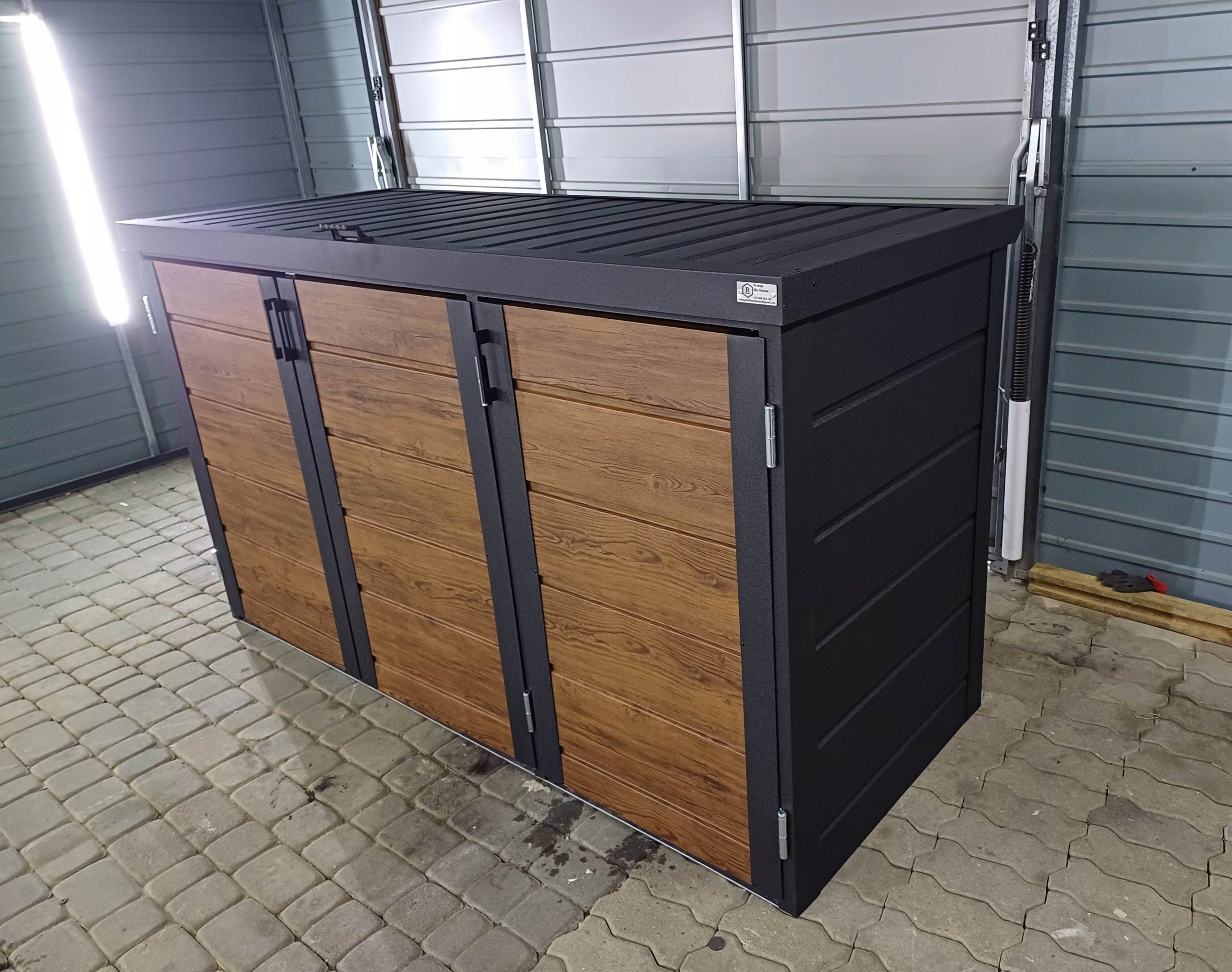 Контейнер для сміття укриття 207х80х120 см 3х240л антрацит + горіх