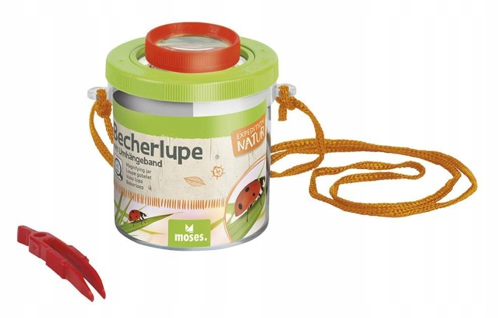 Контейнер для спостереження за комахами з подвійним збільшувальним склом, підвіскою та пінцетом із колекції Expedition Natur. Прозорий контейнер - міні-тераріум для спостереження за рослинами, видами ґрунту, комахами та іншими дрібними організмами, такими як мурахи, дощові черв'яки тощо. Ідеальний інструмент для юного вченого та дослідника природи. Ви можете вивчити найдрібніші деталі дрібних тварин, листя, камінчики та інші предмети. Він має шкалу внизу в двох системах вимірювання. У ковпачку є дві лупи. 2-кратне збільшення в кришці контейнера. х 4 збільшення в рухомій частині кришки. У набір входить підвіска і пінцет.
