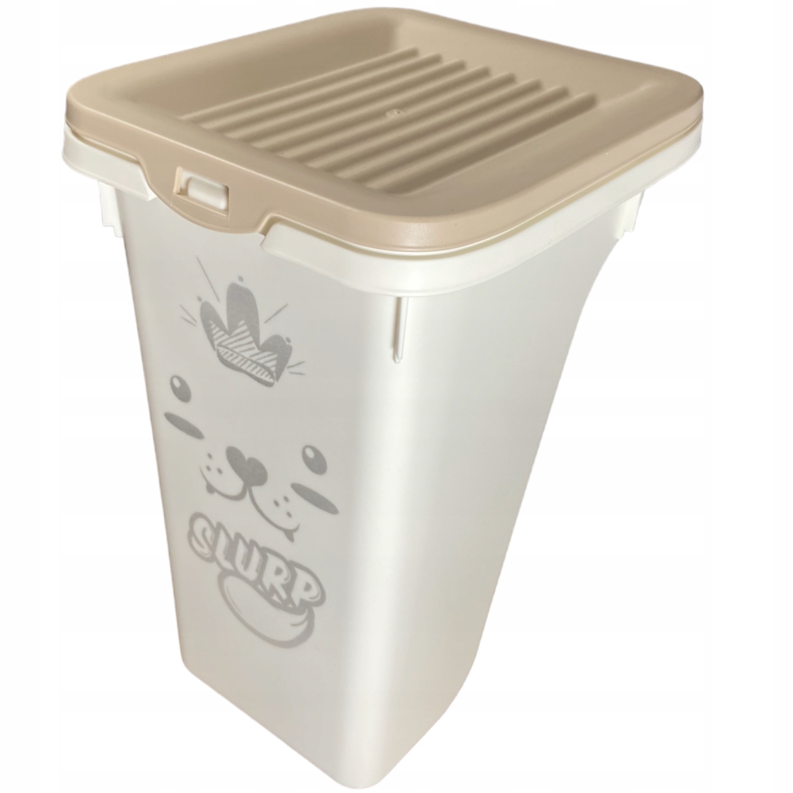 Несвіжа їжа? Порваний мішок і сміття на підлозі? Собака-зломщик, який крадькома годує прямо з сумки? Немає місця для ще однієї сумки котячого корму? Ви можете уникнути цих історій, зберігаючи їжу (або підстилку) у щільному пластиковому контейнері. Ємність MP Bergamo - це естетично виконана модель об'ємом 5 літрів. Відкидна кришка з ущільнювачем щільно прилягає і ізолює вміст ємності від зовнішніх факторів. Сухий корм залишиться свіжим і хрустким, а корисні речовини збережуться. Більше немає запаху собачої їжі по всій квартирі. Встановлена кришка широко відкривається, полегшуючи вийняття продуктів, а додатковий передній захист коробки захищає від випадкового відкриття.