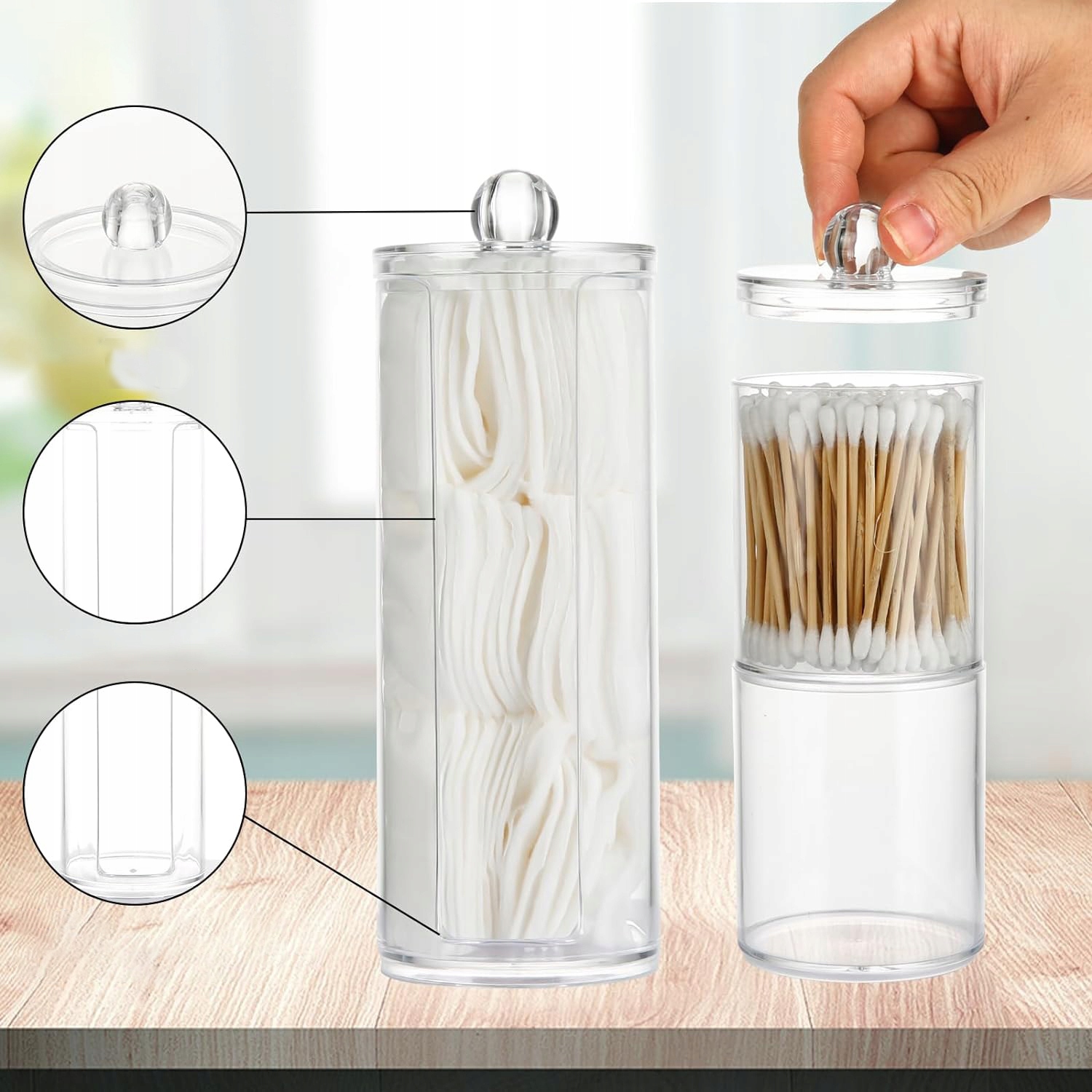 🎀 Простий у використанні: Цей тримач The cotton pad має знімну акрилову кришку та широкий отвір, що робить доступ до предметів ванної кімнати та аксесуарів, таких як ватні палички, подушечки тощо. Органайзер для ванної кімнати стане веселим і красивим доповненням до вашого дому.