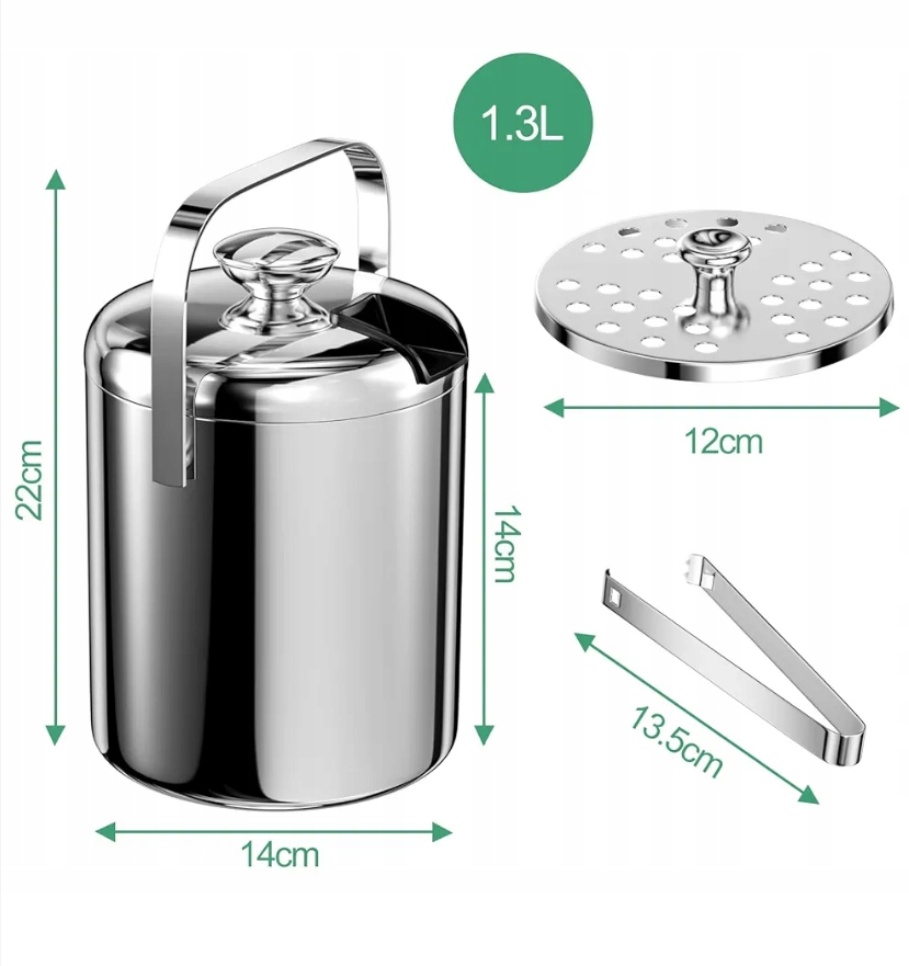 Контейнер для відра для льоду для срібного блиску Luxito 1.3L STRANDER STANER SETER