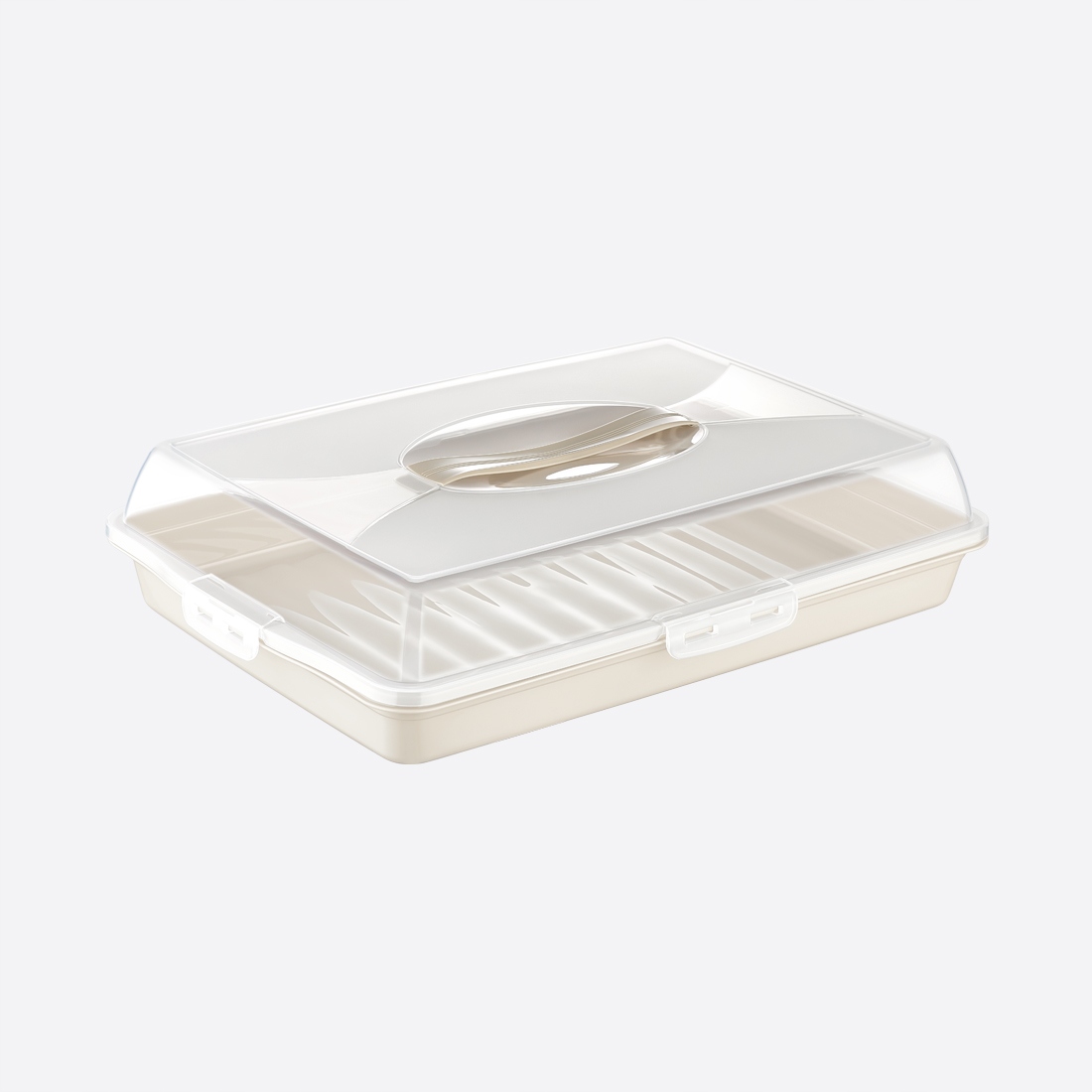 Прямокутне тісто -контейнер виготовлений з найвищої якості пластику, який не порушується. Він не містить шкідливих речовин. Підходить для контакту з їжею. Ідеально підходить для зберігання їжі та випічки. Закрита кришка на 4 засувки з практичною ручкою дозволяє зручно переміщувати контейнер. Практичний та корисний продукт у кожному будинку. Наприклад, їжа, свіжі хлібобулочні вироби, укладені в коробку для тортів, будуть придатними для споживання довше.