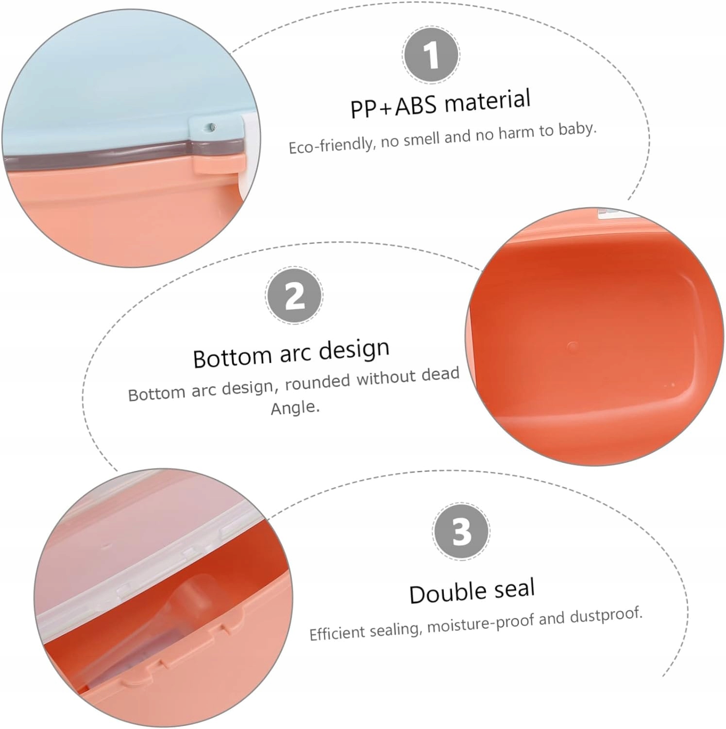 Зберігання харчових цукерок гарантує здоров’я вашої дитини. Матеріали дозатора сухого молока PP та ABS завжди міцні та безпечні для тривалого зберігання. Контейнер для закусок має хороші герметичні властивості, відсутність витоку порошку та вологи. Формула контейнера: наші продукти мають високу стійкість до зношування та розтріскування. Контейнер для молока зберігає сухе молоко та скребок для порошку окремо. Попередження Не підходить для дітей віком до 10 років. Для використання під наглядом дорослих Попередження Лише для домашнього використання