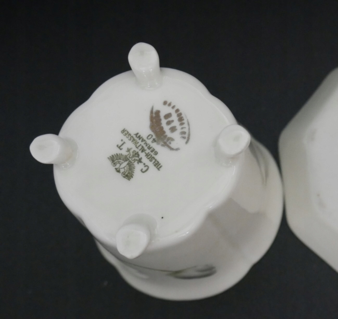 маленький контейнер для зубочисток, інші дрібнички C. T. Altwasser з 1940 року, розпис, підставка з подібним мотивом
